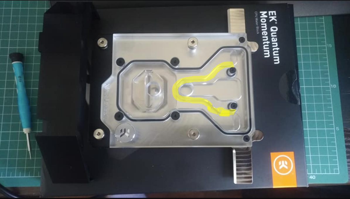 скажи пожалуйста если у тебя уже монобок на руках и есть возможность повертеть его в руках, каким образом выполнена изоляция обведенной полосы ,иными словами ввиду визуального отсутствия там уплотнителя \резинки , каким образом жидкость идет по более длинному маршруту ,а не напрямую из входа в выход