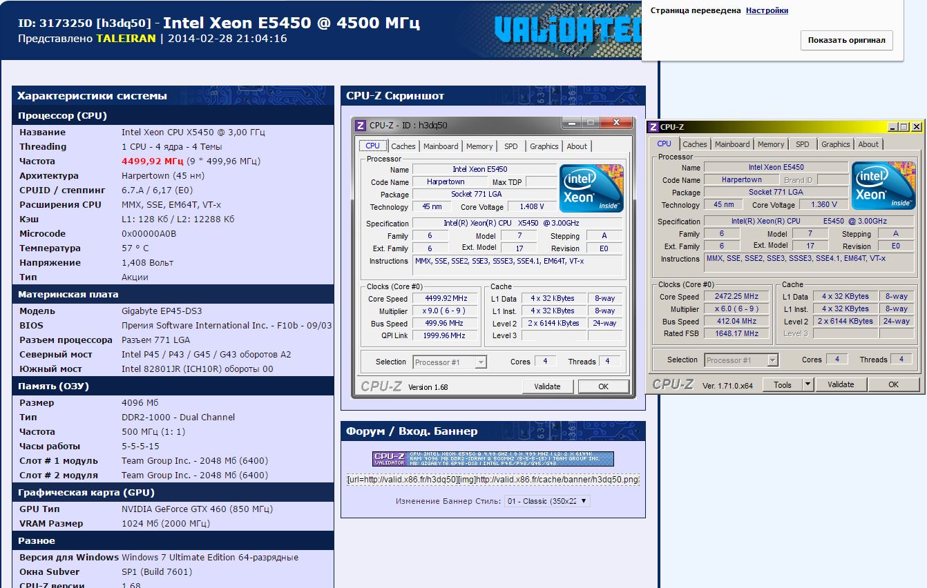 Отчитаюсь по "новостям с полей": Процессор E5450, EO, SLBBM, номинал 1.1875V Кулер старый добрый Zalman 7000 CU (важно) GA-EP45-UD3L; Память: 2 планки OCZ, одна Kingston одна Micron, все DDR2-533, всего 4 ГБ; Два винта (старый IDE новый SATA), Видео Radeon HD 5770; Звук ASUS;