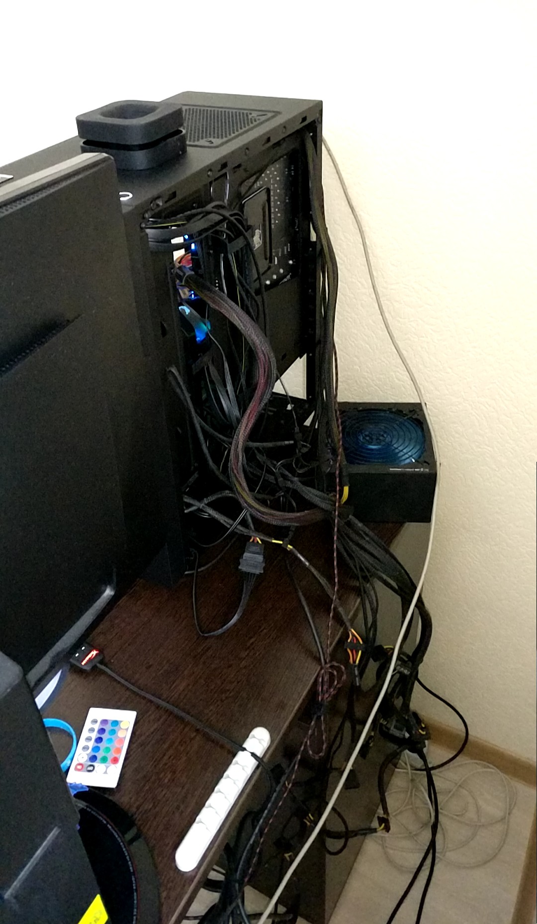 Дело было утром, я его собрал, поставил винду, накатил дрова и перекопировал старые данные со старого харда. Компьютер был во включенном состоянии часа 3-4. Вечером я поиграл в LoL 3-4 часа и выключил. Утром первым делом зашел в биос, поставил профиль DOCP, поставил множитель проца 39, дошел до момента выбора напряжения, offset до этого не видел и пока я гуглил да смотрел видюхи на тюбе, комп просто погас. Я нажал на кнопку питания и бп бахнул. Я отсоединил шлейфы от матери, посмотрел что визуально ничего не погорело, и ради интереса перемкнул еще раз включение скрепкой, о5 бахнуло. Двальше я подсоединил свой старый бп и сейчас у меня на столе бардак...