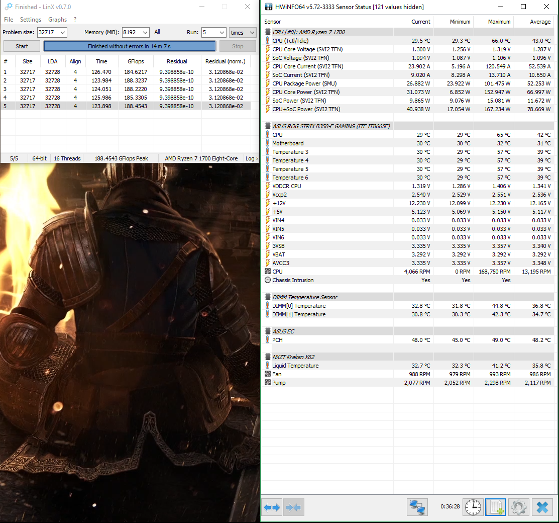 Вроде все ок, невязок нет, температуры в норме. Было некоторое подозрение на твою мать B350, но вроде тянет. Напряжение на SOC ~1.1 тоже пожалуй достаточное для всего.