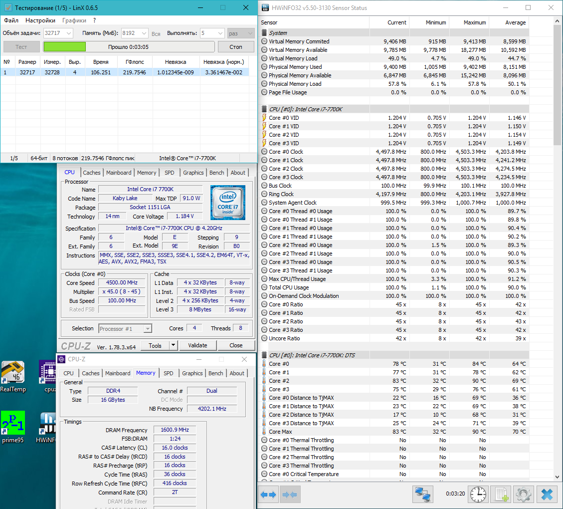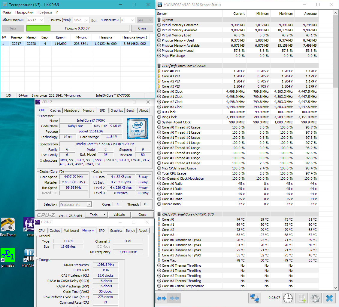 Спасибо, друзья за подсказки. Как-то так получилось, открытый стенд, башня стоит ровно. Почему-то надеялся на более низкие температуры, скайлейк намного холодней был.