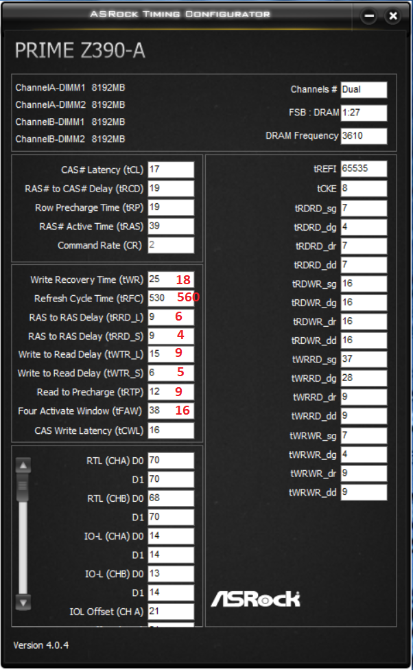 grandrush А зачем завышать tRFC до 560, если на 530 все стабильно работает? Не найду tFAW. Все, нашел. Сейчас протестирую на стабильность. В итоге вот так. Ничего больше менять не нужно?