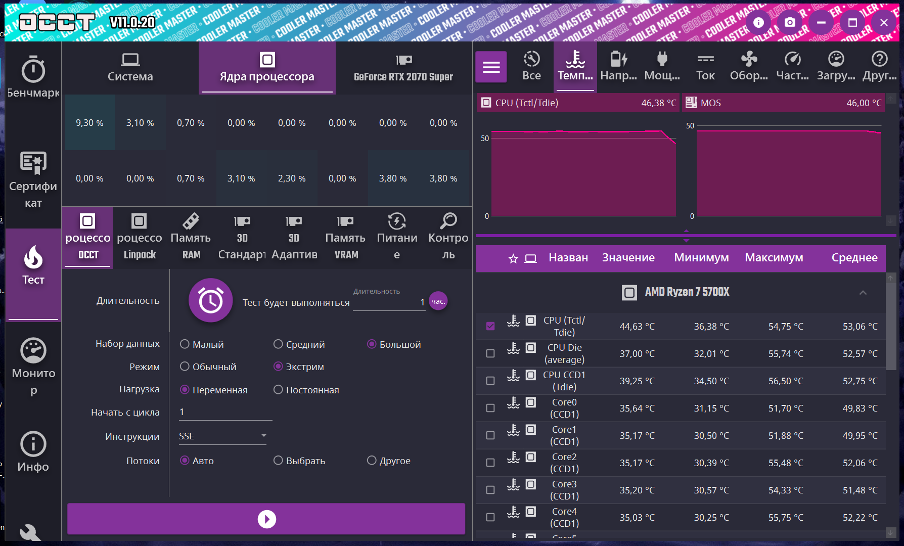 Процессор 5700Х в полном стоке. Вопрос: почему не могу пройти тест ОССТ (его настройки в спойлере)? Выдает ошибки по нескольким ядрам уже с 6 минуты. Система из подписи. Грешу на оперативную память, т.к. стоят 4 планки по 8Гб (одноранки). Может ли оперативка так влиять на прохождение ОССТ? Оператива стоит в стоке - первичные тайминги по ее ХМР 3600 cl17-19-19-39, а все остальные в АВТО. Память проходит Тестмем 5 на пресете Экстрем на 5 циклов без единой ошибки. Если причина в памяти, то может заменить мой комплект 4х8 на 2х16 (одноранки)? Будет ли от этого толк?