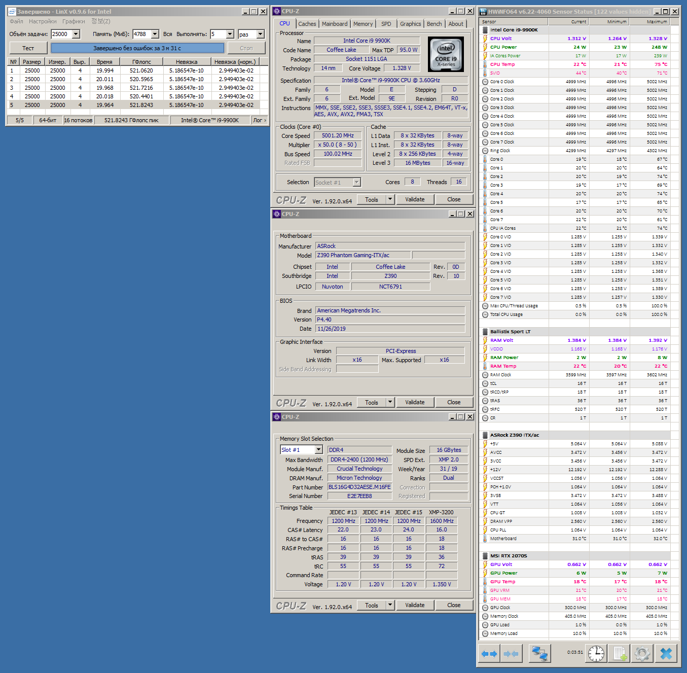 LinX должен быть настроен следующим образом: Задаете режим 32 либо 64 бит, объем задачи = 25000 (не меньше 25000), количество проходов = 10 (не меньше 10).