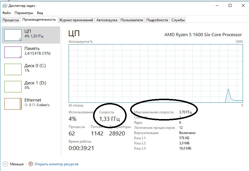 Доброго дня. Прошу оказать помощь и содействие в одном вопросе. В общем процессор ryzen 5 1600, мать asus prime b350 plus, память kingston ddr4 (2400) 2x8Gb, биос последний 3805 В общем собрал платформу, поставил ОС, в биосе все на дефолте, ручками выставил cpu core ratio 37. После ребута в биосе и в ОС он показывает частоту 3.7ГГц как и должно быть, а в cpu-z и в диспетчере ОС частота 1.33ГГц. см скрин. В чем может быть причина? Все энергосберегайки отключены... Скрытый текст