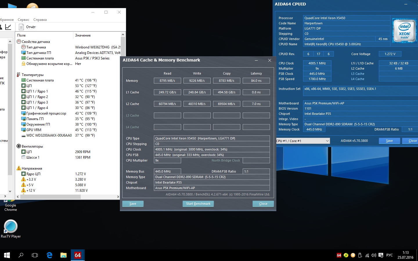 NachoBarbero asus p5q deluxe, e5450 443*9=4ггц на 1.4в LLC. Выше память не дает, да и так уже конструкция жаром пышет. Может, позже и попробую выше, с 6ю гигами (2*2+2*1 которые могут выше 440). Dellirium88 а что мешает добавить десятую вольта и проверить?