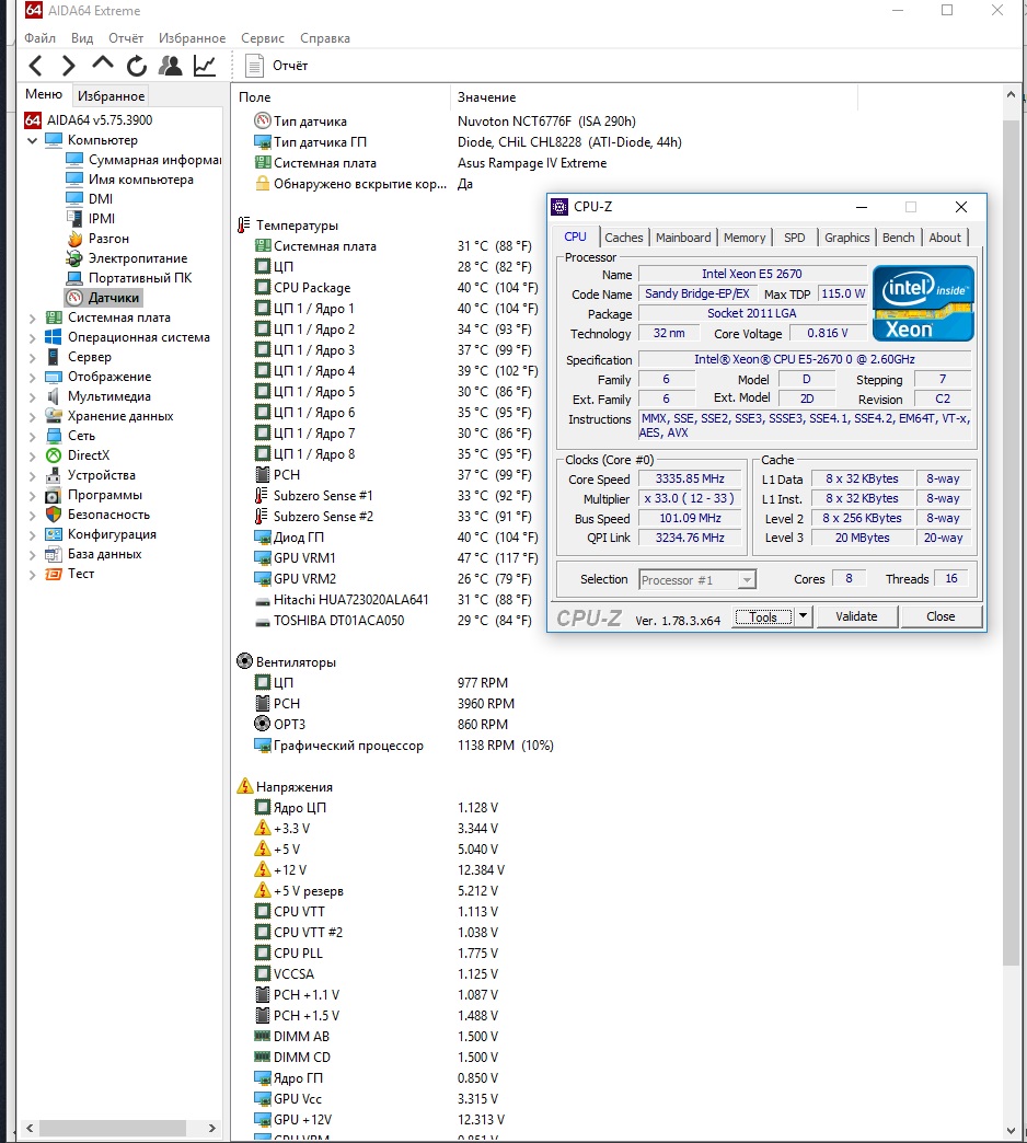 Huanan X79 v 2.46 + E5 2670 + китайская водянка под данную мать... вот что по дефолту имею (ПК работает уже сутки)