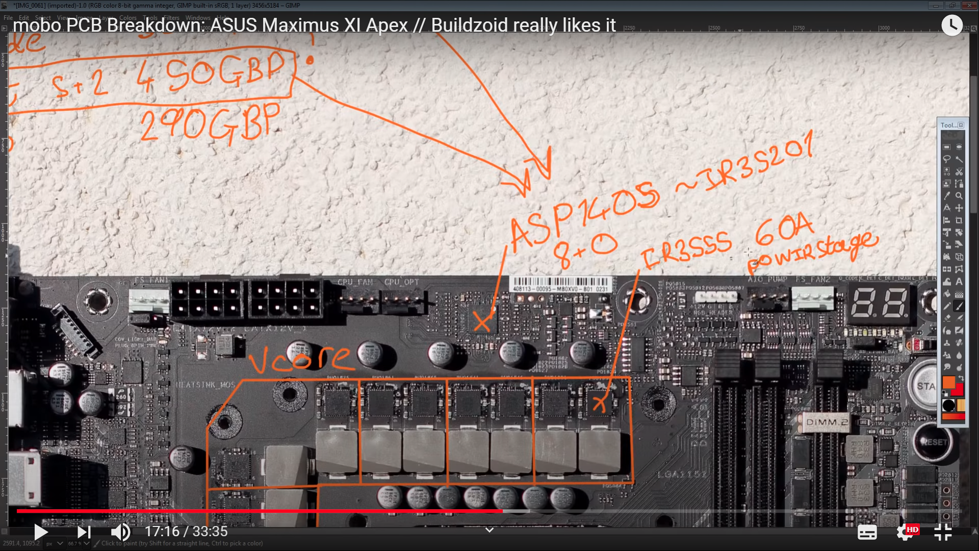 На заборе пишут) Не вводите народ в заблуждение своими "познаниями" VRM Maximus XI Apex построен на шим контроллере ASP1405I по формуле 8+0. На каждой фазе реализованы два канала питания. В каждом канале питания используется по одному чипу IR3555 (60A) компании International Rectifier, который объединяет в себе два MOSFET-транзистора (High и Low), а также MOSFET-драйвер.