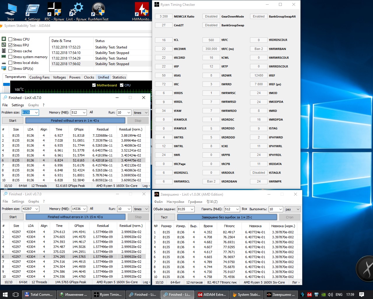 Возвращаясь к своему посту об ошибках в linx 0.7.0, (и о том как я долго боролся с мертвыми зависонами -не реагирует даже на удержание кнопки питания- и прочими черными экранами.) Я, подозревая криворукость китайцев, даже специально исправил этот тест обратно на интел и запускал с теми же условиями - на нем этих ошибок нет. Вобщем что удалось выяснить : Ryzen имеет аппаратные ошибки!!! https://3dnews.ru/957561 https://geektimes.ru/post/287206/ Кто не верит может в этом легко убедиться самостоятельно (и даже нужно это сделать - если ошибка есть, можно потребовать у амд обменять проц по гарантии), см скрин: