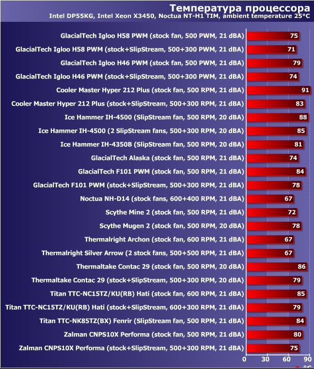 Ссылку тестов в студию! Будет интересно...а то ведь есть вот такая инфа: 79 градусов у H46 (500рпм) против 80 у перформы 10x (500рпм) в данном тесте на 17 градусов разхницы как-то совсем не тянут.