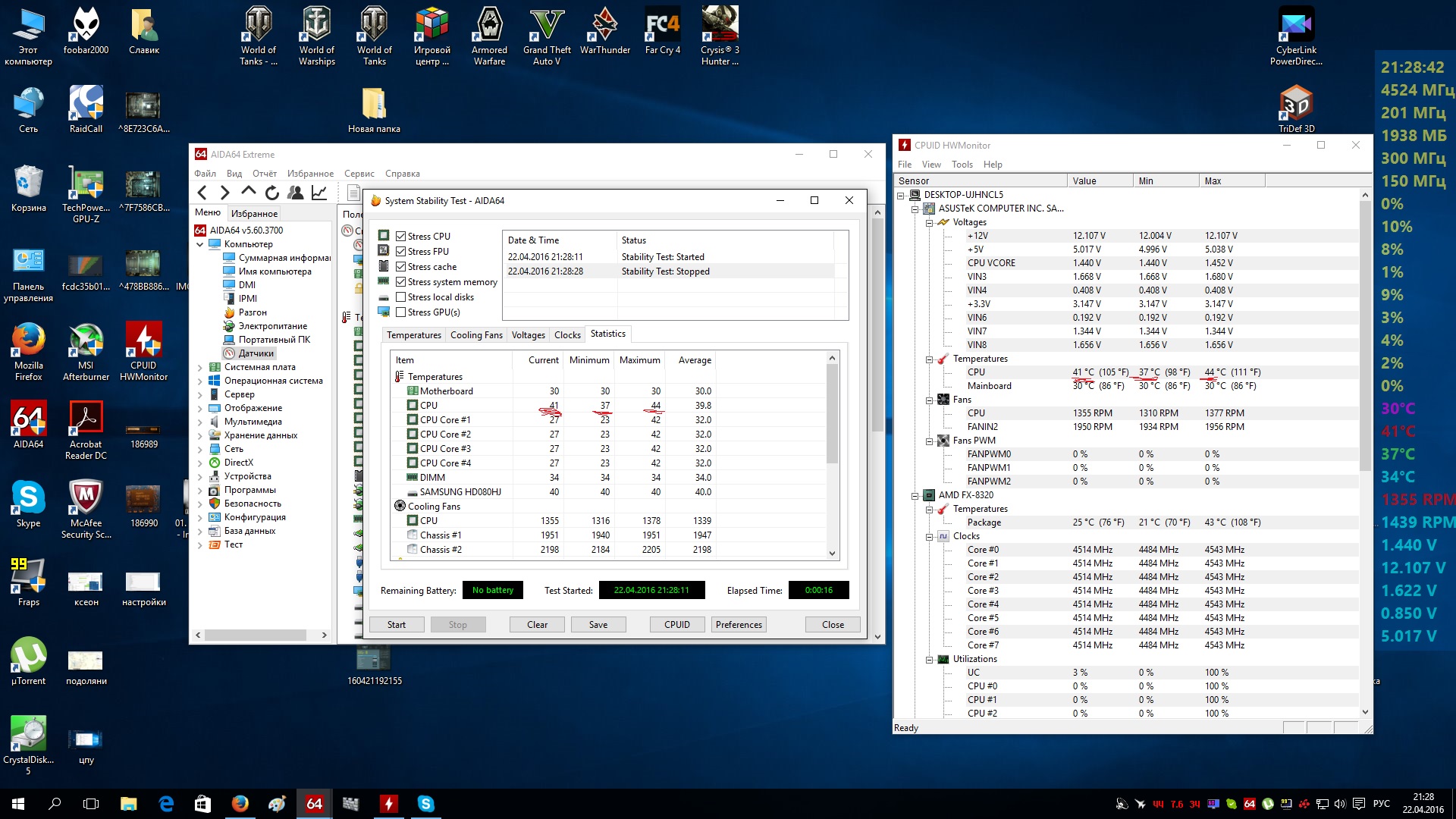 M_E_L малой седня целый день играл при 1.46в ,один раз выкинуло ,накинул на 1.45 думаю будет все ок , насчет температур вот и аида и хардваре инфо показывают одинаковые цифры