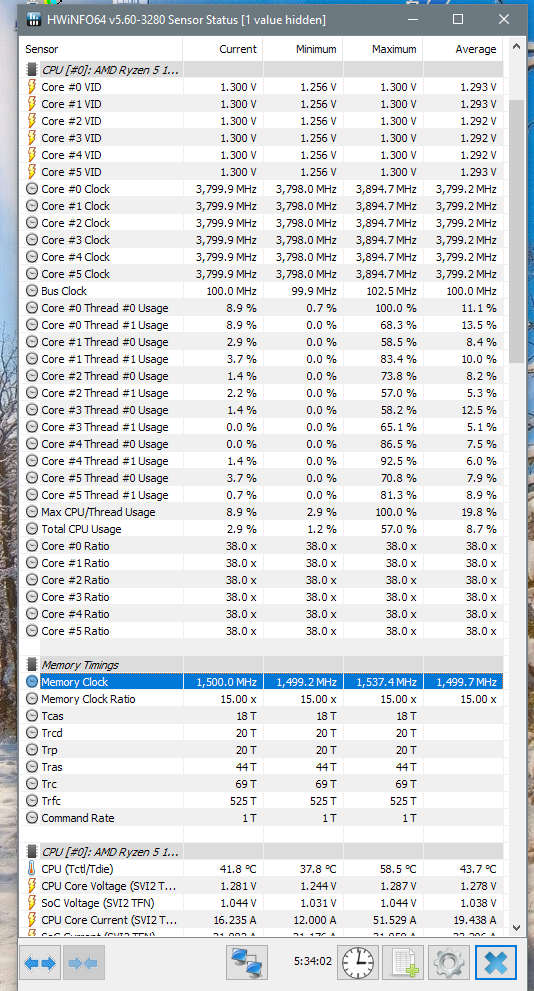 - Обычно поставляется в коробке с системой охлаждения Wraith Spire RGB (это круглая конструкция из целого куска алюминия с медной вставкой-испарительной камерой в основании и вентилятором с кольцом разноцветной подсветки, крепится к задней пластине разъёма AM4 четырьмя винтами). - Штатно имеет базовую частоту 3.0ГГц, частоту 3.2ГГц (технология Turbo Boost) при обычной многопоточной нагрузке (Blender n-cores render) и 3.75ГГц (технологии Precision Boost и XFR) при однопоточной нагрузке (Cinebench R15 single core). - Штатное напряжение питания 1.1875В. Может возрастать до 1.3В на отдельных ядрах во время работы Precision Boost и XFR. - Очень энергоэффективный, требования к СО (TDP) - всего 65W. Энергопотребление порядка 10Вт в простое и 85Вт в обычной многопоточной нагрузке (Blender n-cores render).