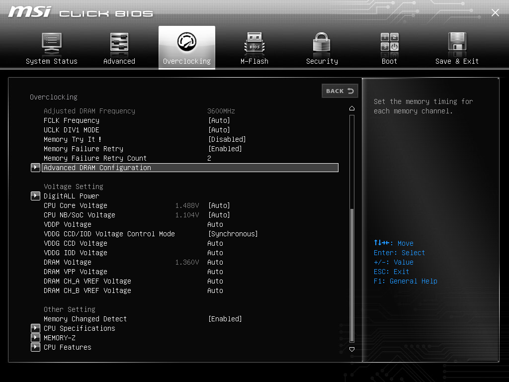 aka_s3rious Стоят тайминги забитые вручную. 3600 CL17-18-18-38-56@1.35V. Старт без ошибок. Биос версии 7B78v2D. Agesa 1.0.0.4B Кстати, ваша память входит в список совместимой с материнкой?