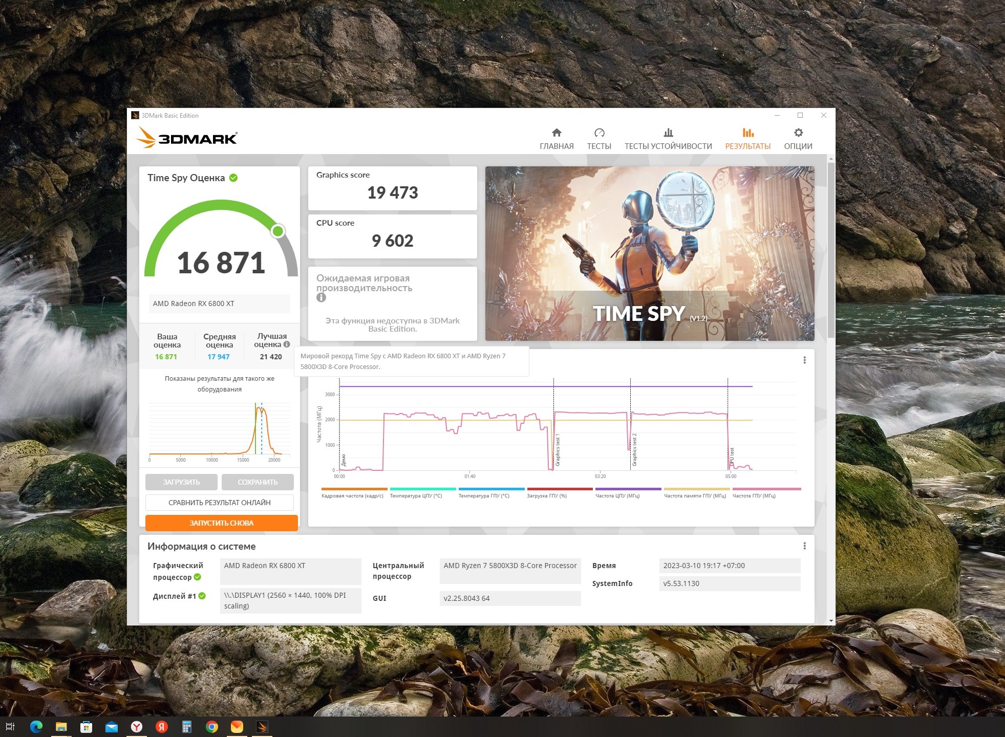 А так ничего, что у вас R75800X3D, а у меня R75800X? Накрутите свою графику тоже до 2600 кто вам не даёт, мой результат с заводскими лимитами видеокарты и ЦПУ! Увеличение частоты памяти или разгон на R75800X3D ничего не даёт в реальности!