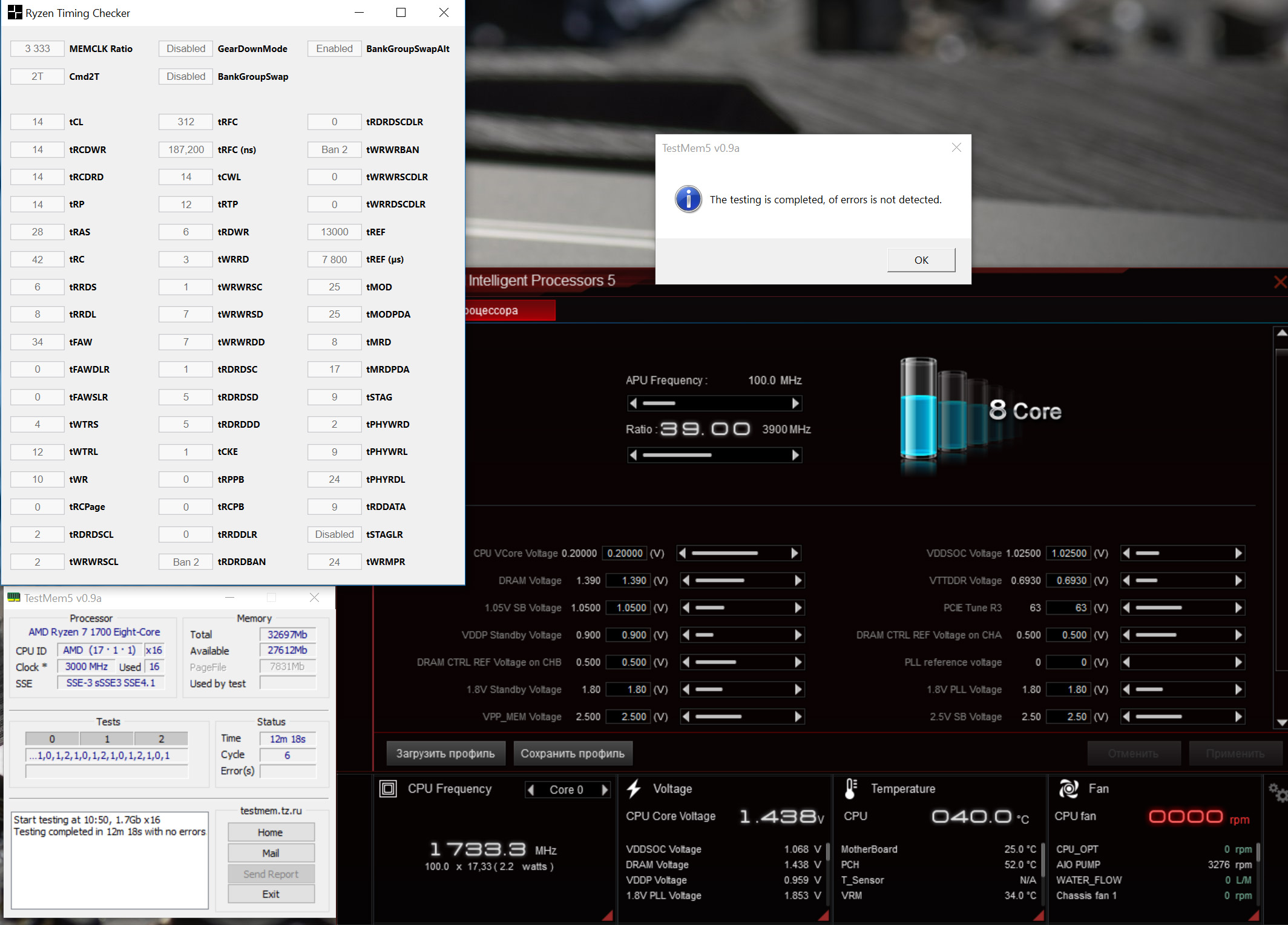 DRAM R1 Tune 40 40 40 40 DQS drive strength 60 при procODT 68.6 Memory Interleaving Size 512 byte Sense mi skew disable CLDO_VDDP manual 700 По приколу включил ECC которой у меня нет