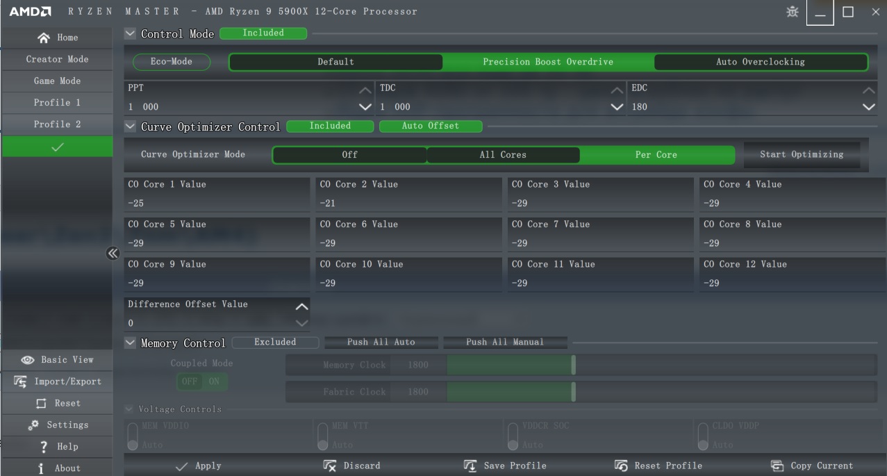 Лично я выставил сразу лимиты по максимуму что может VRM материнки и сколько может переварить охлаждение. Precision Boost Overdrive Scalar чем больше значение, тем позже и менее агрессивно процессор сбрасывает частоты после того как пропала нагрузка. Выставил на максимум. Что касается Load-Line Calibration то для всего кроме VCore выставляю в самое агрессивные значения, хотя и для VCore тоже. Precision Boost берёт во внимание показания именно мониторинга, а не запрашиваемое значение. Мониторинг материнской платы читается Precision Boost`ом через такой протокол как SVI2 TFN. Технология заключается в следующем: 1)выставляем Желаемый VCore Offset, если выставляем его в сторону увеличения, то малопоточная производительность будет выше, если в сторону уменьшения то многопоточная производительность будет выше. Под каждую настройку VCore Offset надо подправлять значения Curve Optimizer, 2)сначала для всех ядер уменьшаем Curve Optimizer, 3)запускаем скрипт, упомянутый выше, повторяем шаг номер 2, пока ни начнёт вываливаться ошибка на одном или нескольких ядрах и откатываемся на один шаг 4)запускаем после этого Cinebench R20, с большой вероятностью система просто перезагрузится, это по большей части лечится добавлением CPU PLL напряжения с 1,8V, но не превышая 1,9V, хотя от чрезмерного напряжения PLL может начаться обратный эффект и стабильность пропадёт, 5)далее начинаем настраивать Curve Optimizer для каждого ядра отдельно и проверяем стабильность как в шагах 3-4.
