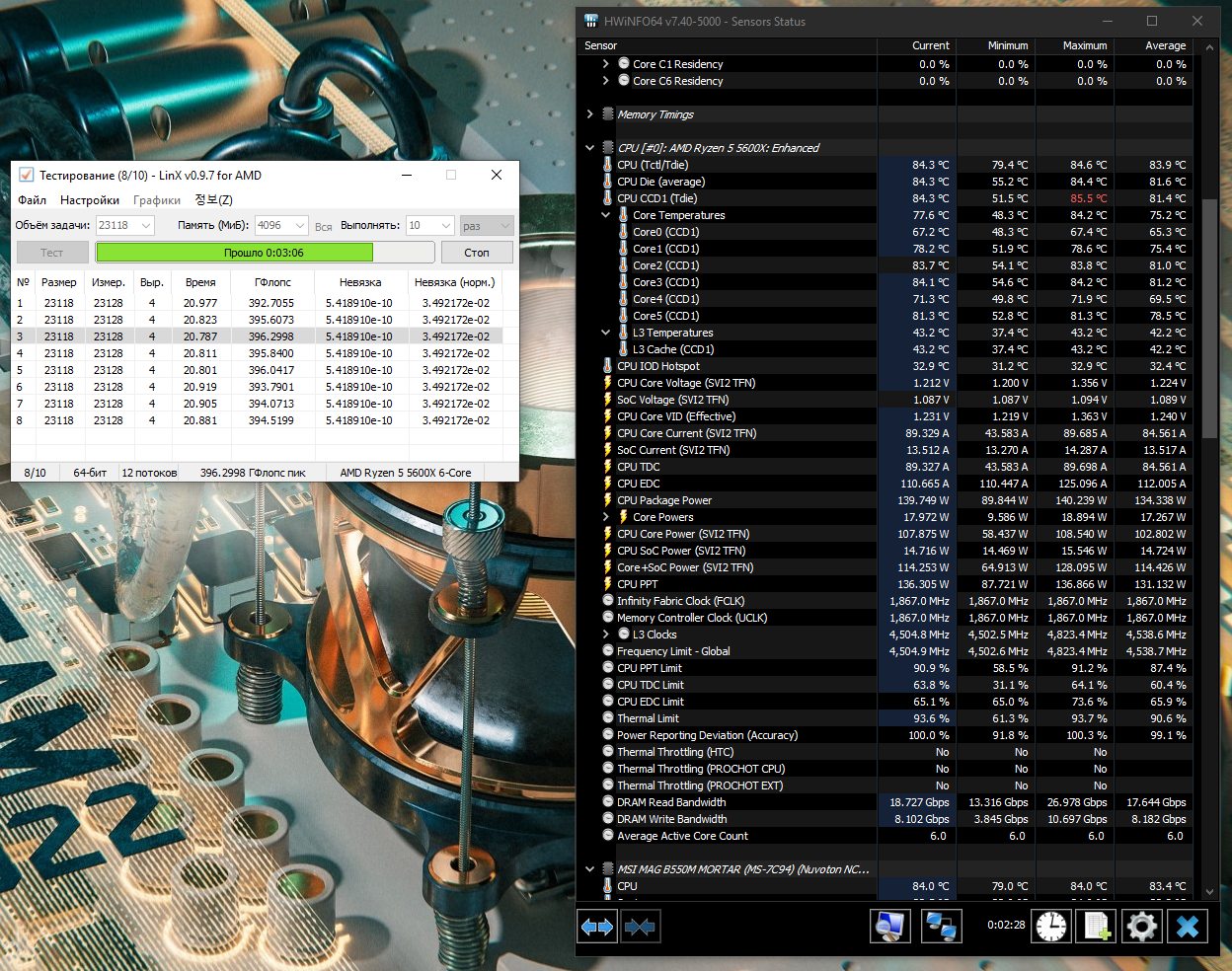 Делюсь болью и страданиями! В начале 2021 года купил я 5950X и материнку ASUS X570-I всё настроил спустя пару месяцев, радовался. Спустя пол года начались приколы, за неделю разок проскакивали ошибки WHEA Logger, по одной, потом через пару месяцев вообще критически ошибки WHEA Logger начали появляться и ребуты, причём под малыми нагрузками при просмотре видео или ютубчика, или при свёрнутой игре на паузе. После перепаковки водоблока на видюхе остались термопрокладки Gelid GP Ultimate, разобрал материнку, поменял термопрокладки на VRM, на обратной стороне VRM и на чипсете и вуаля, всё как рукой сняло. Напряжения CLDO VDDP, VDDG IOD, VDDG CCD получилось снизить до старых пределов. Какая связь между WHEA и охлаждением материнки я ХЗ. Но изначально начало помогать тупо обдув вокруг сокета 120мм вентилем. Теперь и без вентиля работает. Посмотреть бы на материнку в тепловизор.