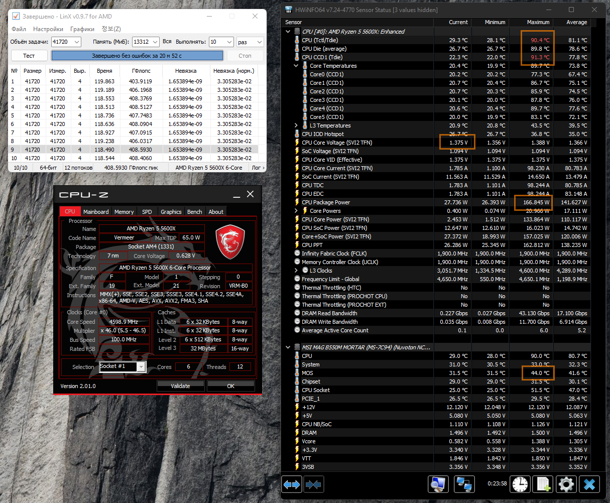 Ну для выжимания всех соков из 5600x оправдано купить B550, возможно. Я бы только ради 200МГц менять МП не стал, но тут каждый сам решает В малопотоке мой 5600x сейчас бустит до 4924 по лучшим ядрам (разгон по шине в т.ч.), по всем ядрам 4,5-4,8 ГГц +/- в зависимости от нагрузки (в линксе меньше конечно)