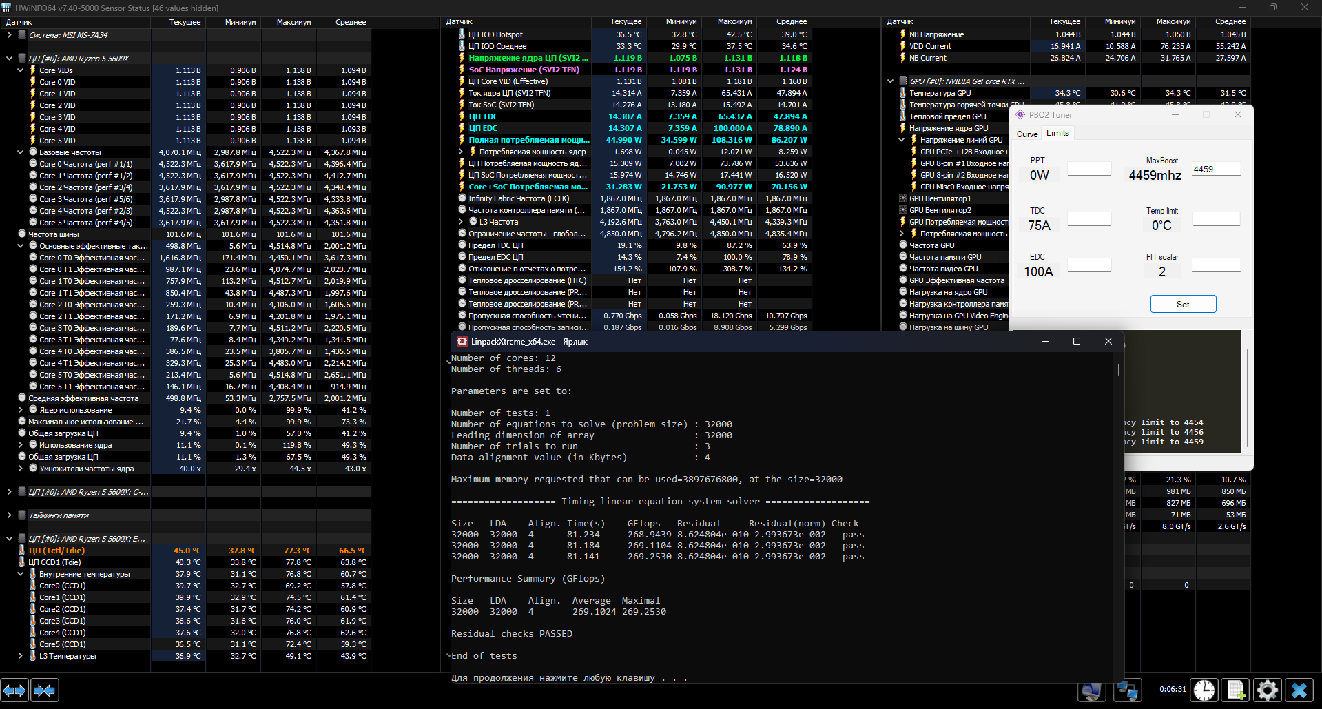 В фоне легкая работа крутится правда, не могу сейчас стопнуть, и 4525 ровные не могу выставить - разогнана шина, но как есть, сделал чуть меньше. Упор в EDC был при этом (100 А), не могу (да и не хочу) бутаться, чтобы увеличить лимит - PBO tuner не может выставить выше, чем выставлено в BIOS
