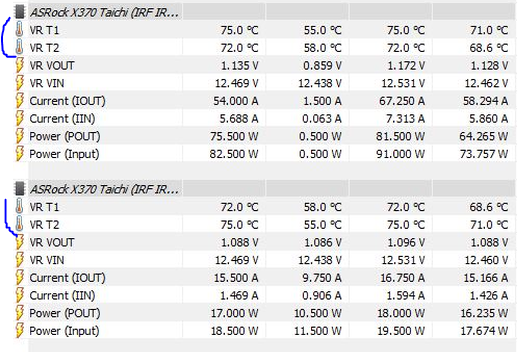 Kuzia-22 Народ, а вот у меня тайчи, там вроде нормальный врм, но при тестировании праймом врм греется до 69-70° максимально, это нормально в целом для длительной эксплутации? Хотя в реальности даже под нагрузкой темпа ниже на 5-9°. Просто вентили крутятся далеко не на максимальных оборотах, так как акустический комфорт тоже важен. Но вот больше всего меня беспокоят следующие датчики: