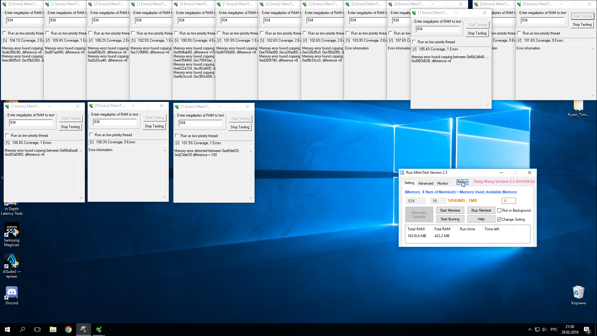 Возвращаясь к моей писанине выше. Еще раз железки на всякий: r7 1700, asus b350 prime plus, kfa2 hof 4000 по подсказке товарища XRR (Его тайминги с 3333 на мои 3200 при 1.4в и соке 1.1, прок 53.3Ом)