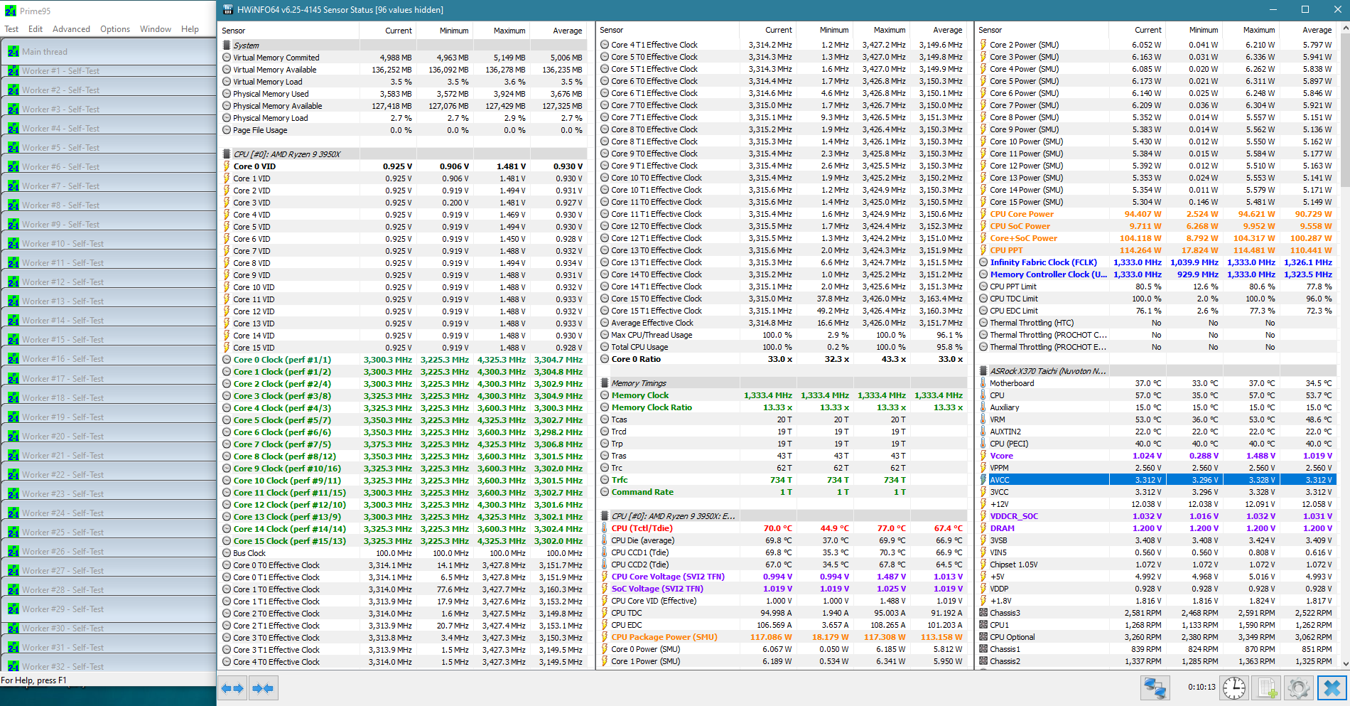 Ну вот, починил, и частоты выше и темп 80град, это норм В нагрузке разница в напряжении между авто и pbo on посмотри ааа, ну разница в 90млв. Не более 1.1в. Вполне себе норм. Все таки спроси у обладателей 3950х, сколько у них.