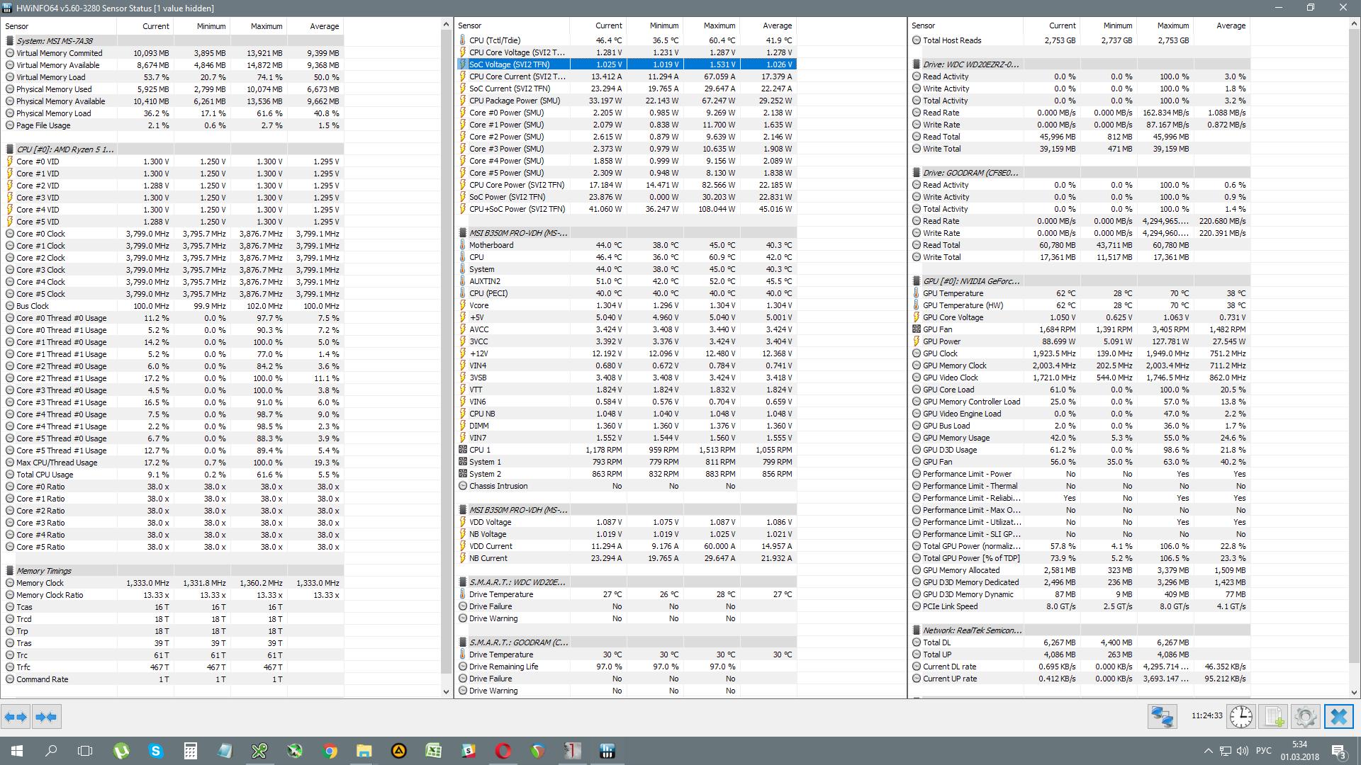 - Обычно поставляется в небольшой коробке без СО. - Штатно имеет базовую частоту 3.6ГГц, частоту 3.7ГГц (технология Turbo Boost) при обычной многопоточной нагрузке (Blender n-cores render) и 4.1ГГц (технологии Precision Boost и XFR) при однопоточной нагрузке (Cinebench R15 single core). - Штатное напржение питания 1.35В. Может возрастать до 1.45В на отдельных ядрах во время работы Precision Boost и XFR. - Энергоэффективность средняя, требования к СО (TDP) - 95W. Энергопотребление порядка 12Вт в простое и 137Вт в обычной многопоточной нагрузке (Blender n-cores render). - По сравнению с R7 1700 имеет увеличенный промежуток XFR (100МГц вместо 50МГц), а также увеличенные технологией SenseMI показатели температуры на 20 градусов (например, 90 при реальных 70).