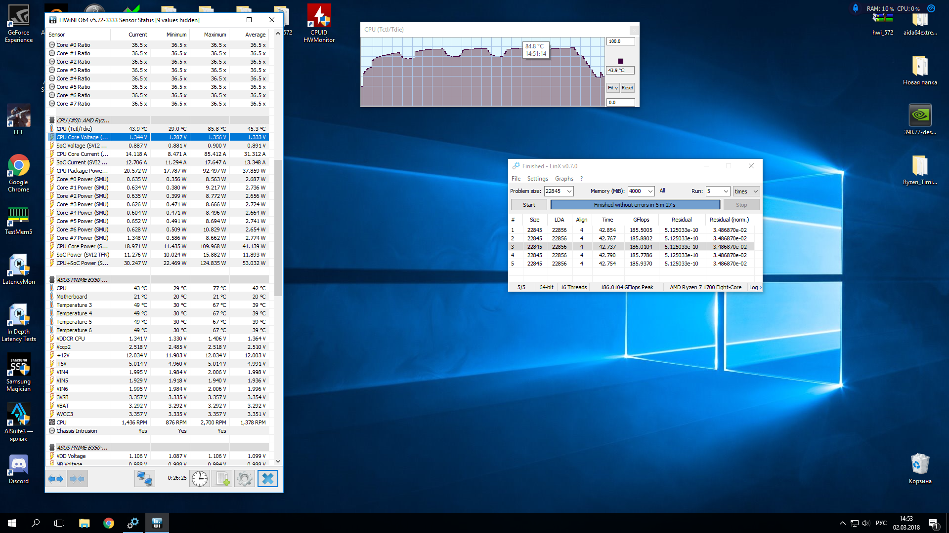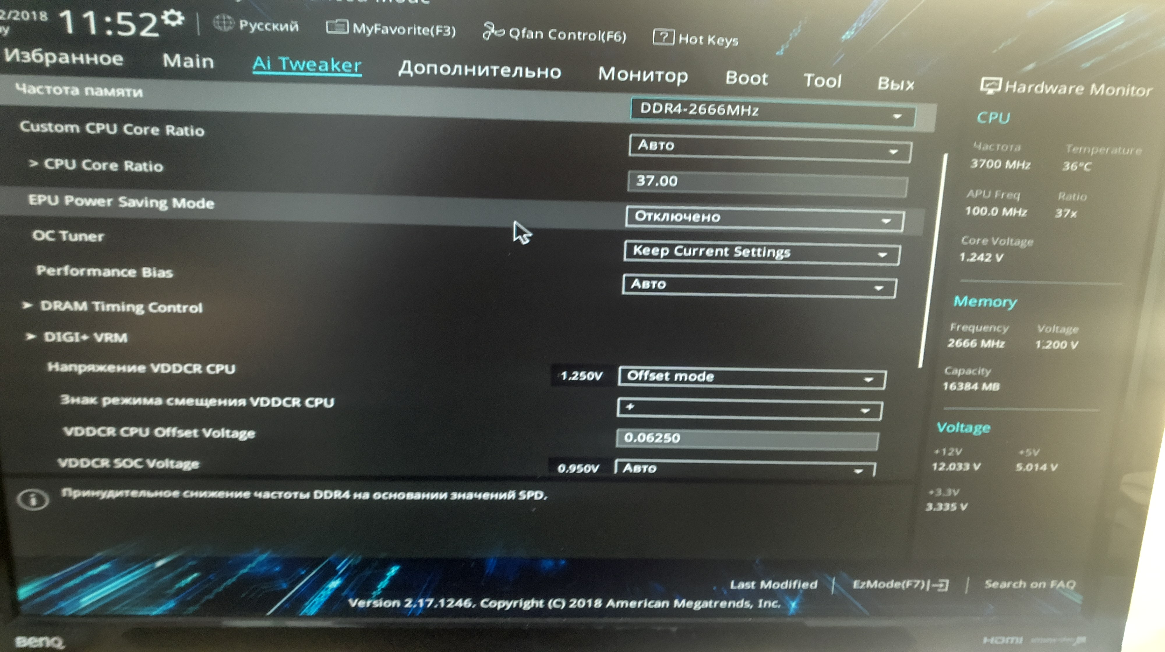 Я опускал на 2 шага ниже 1.2х вольт, был краш. LLC Regular, остальное авто (в VRM), буст, с-ctate вырублены. Попробую поднять при текущих 1.2125 до 3750МГц