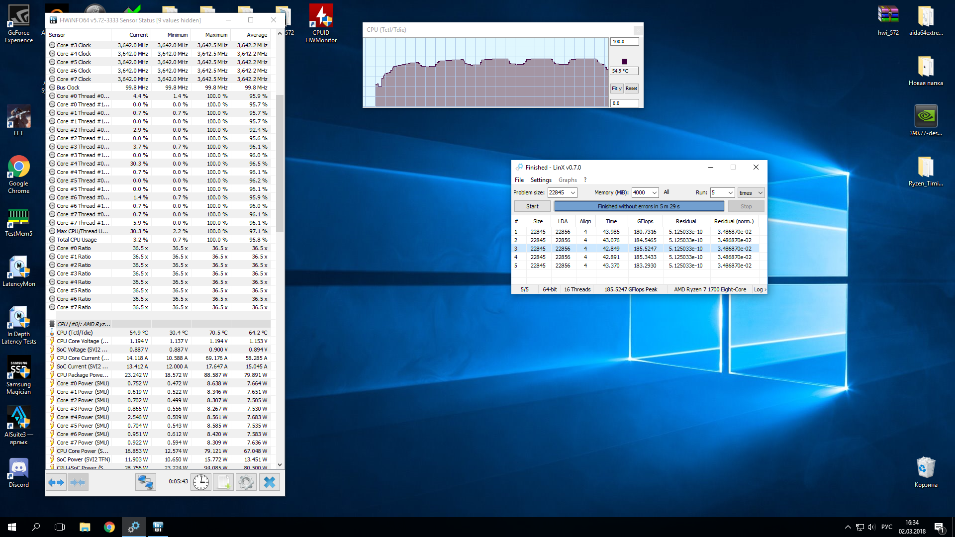 Только что прогнал 2 раза, извиняюсь что в хвинфо не прокрутил до вольтажей, косяк( Первый скрин 1.2в биос, второй 1.2125. Мне непонятны такие просадки в графике и выхлоп 1го прогона (180Г\флопс), для себя подумал что типа холодный старт. Лично сам думаю остановиться на 1.2в, мне 3650 пока хватит, охлад будет там и на другие частоты попрыгаю, а пока в Escape From Tarkov и эта частота более чем хороша, сразу после нее придется разбираться с ОЗУ, без моих психов как раньше) В самой игре, на 1.3в при лютом прогреве в линксе в 80+ игра тянулась на 45гр стабильно)) Во всех сценах, на неоптимизированной карте (да и сам движок не сахар)