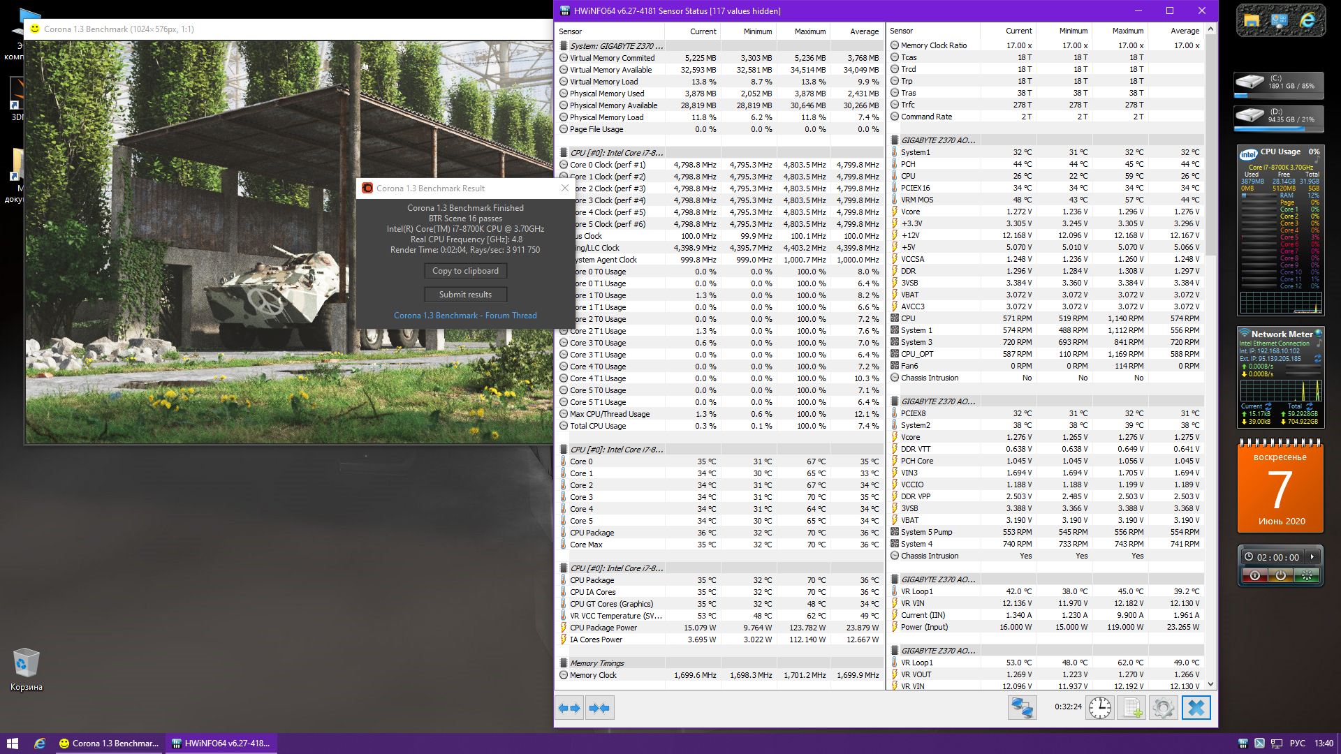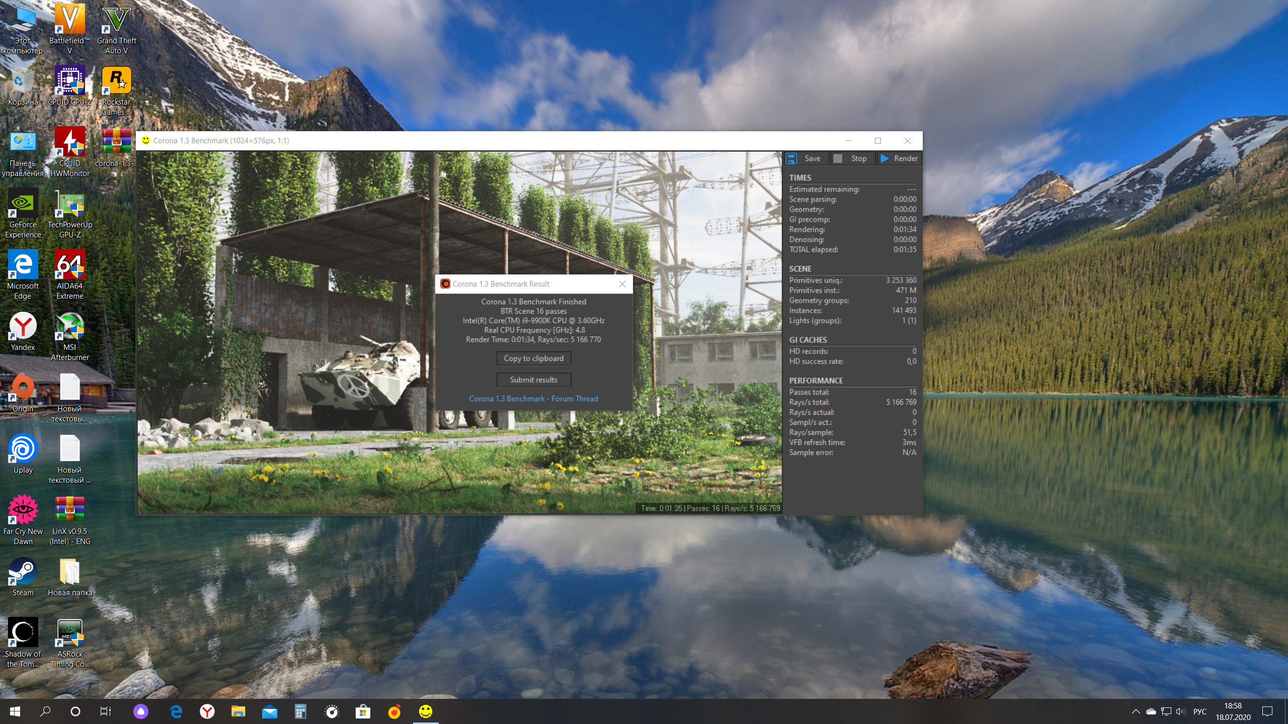 Вот корона на 4800Мгц для сравнения с твоими 4800Мгц и крутой твоей памятью.