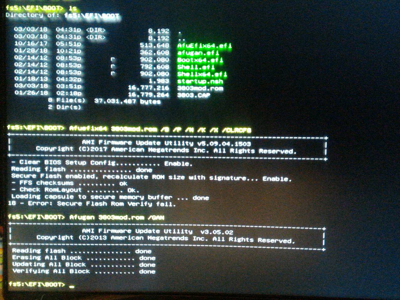 ) мод через Afugan и ставится. А через Afuefix64 ставится официальный БИОС, но с очисткой зависших параметров. И через Afuefix64 с добавлением /Х можно откатываться на предыдущие БИОСы. Также, сначала оф. БИОС, потом на него, соответствующий мод(если он есть) Ты как инструкцию то читал?)