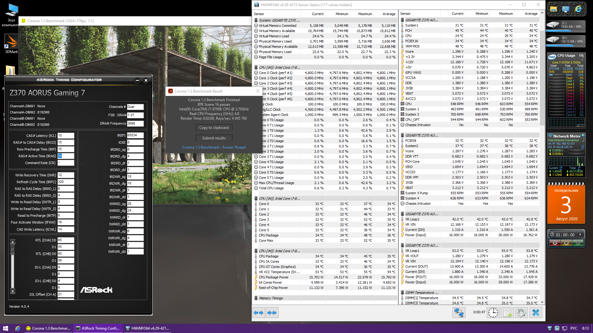 Ateraxдоброй ночи. Память дополнительно охлаждается? Выставил на своей 1.350v на 3600 после часа в division 2 хорошенько обжигает при том что корпус открыт и кондиционер старается. Не сложно скрин с таймингами сделать?