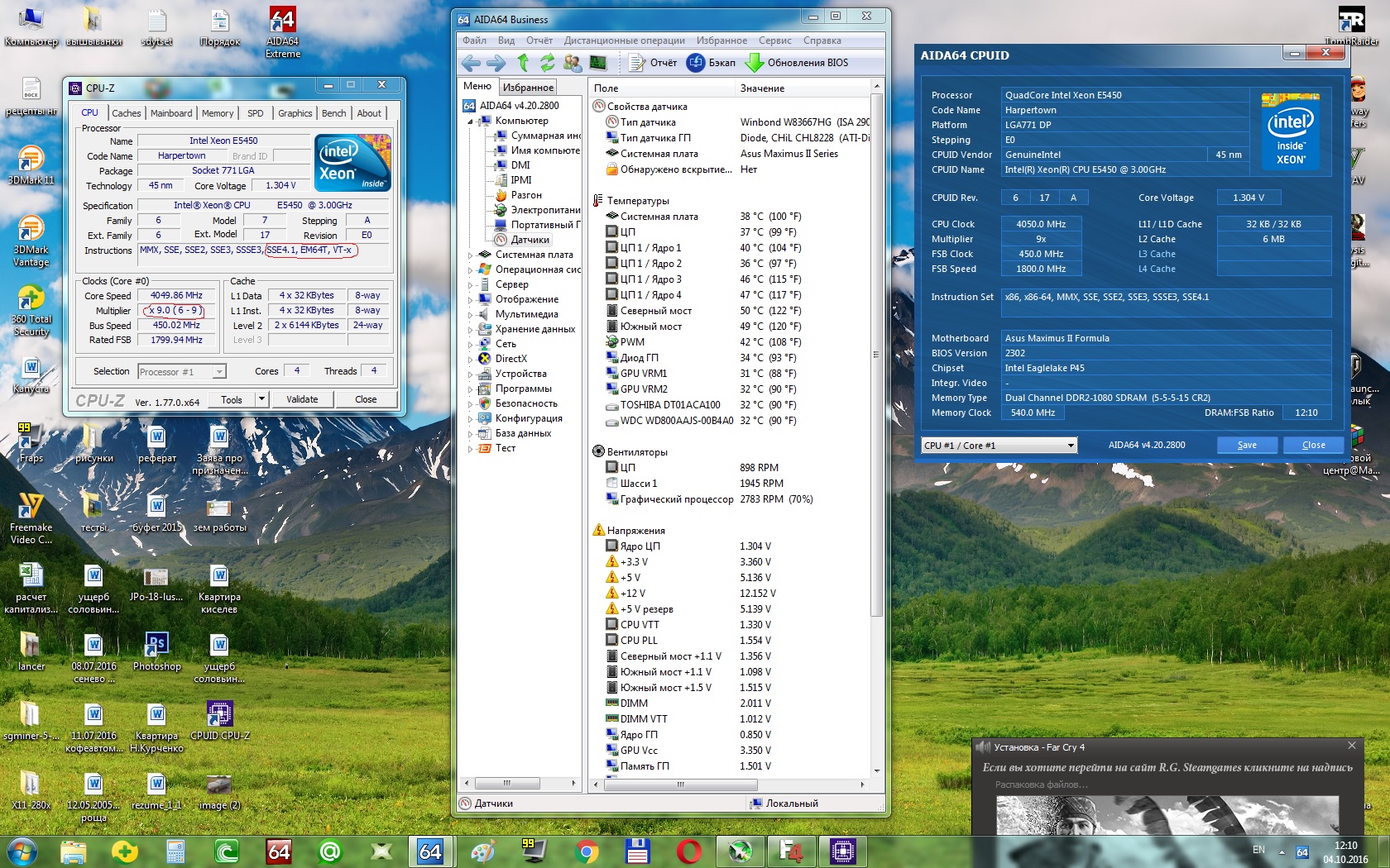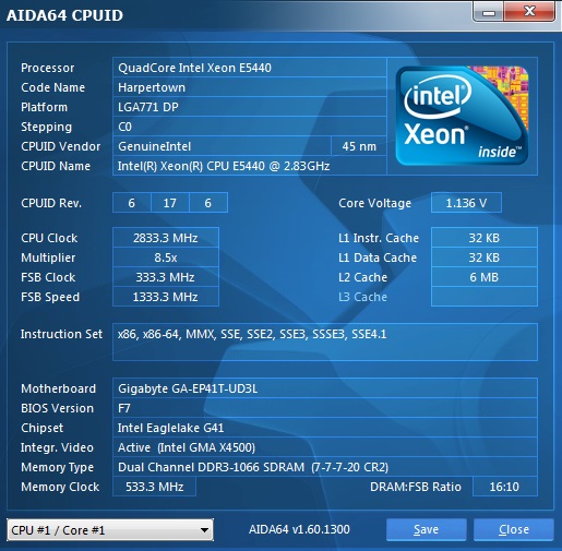 Очень разочарован ксеоном E5440. Игры грузят проц от 40% до 100% там где и не должно быть такого. Firefox с парой вкладок - 40%, но это особо не мешает. В простое 20% может накручивать от движения мышки. Конфигурацию менял как только можно: винды, винты, матери (прошитые/не прошитые) на ддр2/ддр3, шлейфы, видюхи... Провел кучу тестов и бечмарков которые ничего не выявляют. Температура стабильно 40-50.