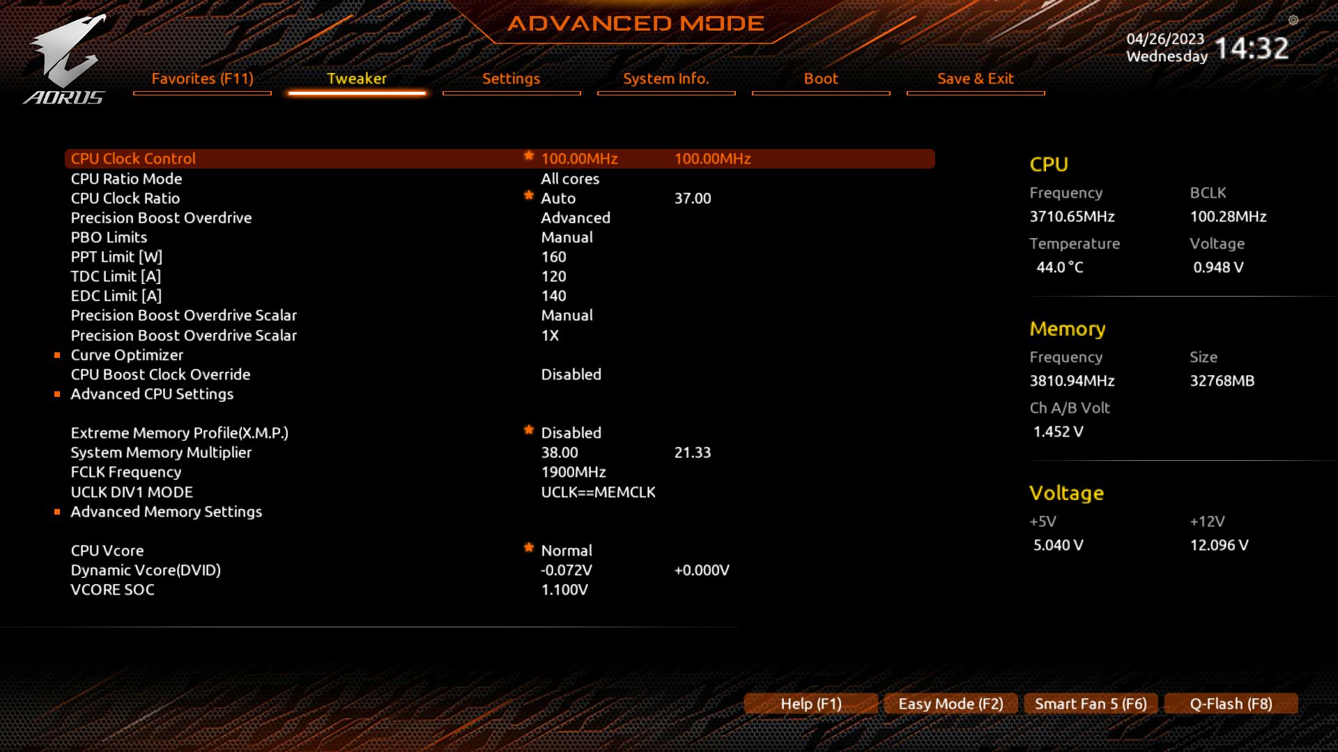Лично я выставил сразу лимиты по максимуму что может VRM материнки и сколько может переварить охлаждение. Precision Boost Overdrive Scalar чем больше значение, тем позже и менее агрессивно процессор сбрасывает частоты после того как пропала нагрузка. Выставил на максимум. Что касается Load-Line Calibration то для всего кроме VCore выставляю в самое агрессивные значения, хотя и для VCore тоже. Precision Boost берёт во внимание показания именно мониторинга, а не запрашиваемое значение. Мониторинг материнской платы читается Precision Boost`ом через такой протокол как SVI2 TFN. Технология заключается в следующем: 1)выставляем Желаемый VCore Offset, если выставляем его в сторону увеличения, то малопоточная производительность будет выше, если в сторону уменьшения то многопоточная производительность будет выше. Под каждую настройку VCore Offset надо подправлять значения Curve Optimizer, 2)сначала для всех ядер уменьшаем Curve Optimizer, 3)запускаем скрипт, упомянутый выше, повторяем шаг номер 2, пока ни начнёт вываливаться ошибка на одном или нескольких ядрах и откатываемся на один шаг 4)запускаем после этого Cinebench R20, с большой вероятностью система просто перезагрузится, это по большей части лечится добавлением CPU PLL напряжения с 1,8V, но не превышая 1,9V, хотя от чрезмерного напряжения PLL может начаться обратный эффект и стабильность пропадёт, 5)далее начинаем настраивать Curve Optimizer для каждого ядра отдельно и проверяем стабильность как в шагах 3-4.
