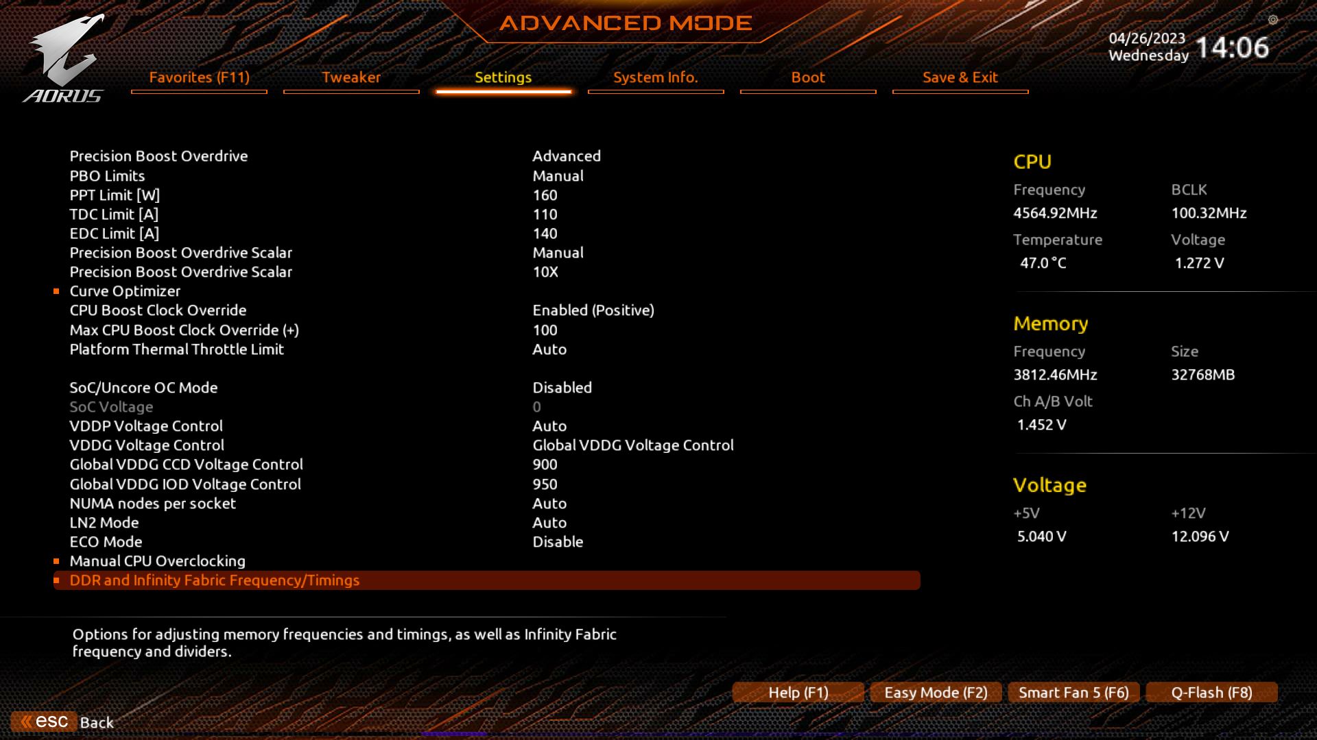При этом методе игнорируется лимит EDC, лимит TDC настраивается исходя из возможностей VRM, какой ток в амперах материнская плата может максимально выдать не перегревая VRM, лимит PPT это максимальное потребление процессора, особенно актуально если система охлаждения очень инертная. 5900X/5950X упрутся в температурный лимит в 90°С на самом горячем CCD, 5600X/5800X в 95°С, эти значения можно уменьшить при помощи настройки Platform Thermal Throttle Limit. Последние 5°С до этого лимита дают приличные пенальти к бусту.