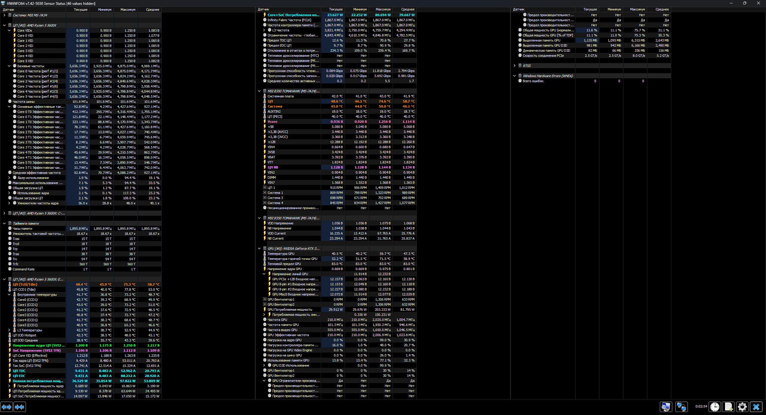 Тестирую вобщем щас , выставил через райзен мастер 4600 на 1.25 , под стресом 1.23- 40 мин экстримальный осст пока держит , что еще можно для уверености пройти? И когда буду заносить в биос параметры нада чтото еще менять там энергосберегайки или еще что ? Или просто частота , волтаж проца , сокет 1.1в , хмп и всё ? п.с забавно на экстримальном стресе час продержало норм , а на обычном не держит сыпятся ошибки, как это вобще... п.с.с. на 4500 1.25в с ллц в авто - засыпало ошибками в осст через пол часа стреса , выставил 4500 1.25 но уже с ллц в турбо - час простояло с теми же настройками стреса осст которые 4600 с 1.25 не вывез и потом добавил еще один уровень ллц до экстрим... В итоге 4500 на 1.25, а в стресе получается 1.225в при ллц экстрим