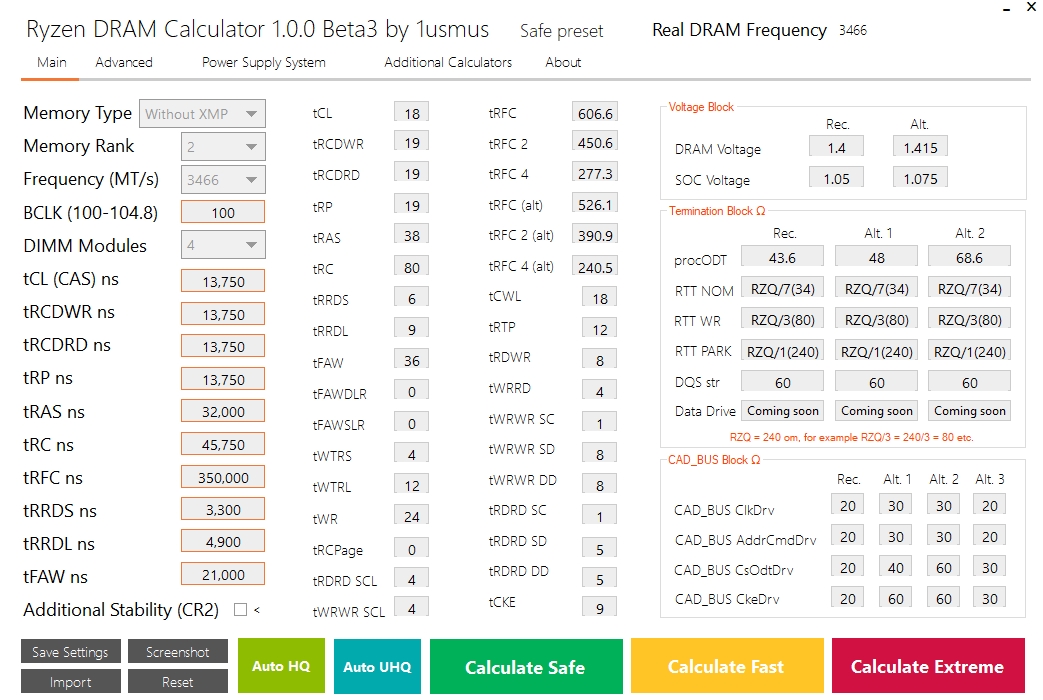 Ребята такая засада, иногда (очень редко) память на 3466мгц запускается с проком 48ом и проходит тестмем5 при соке 1.11, но стоит перезагрузить комп, то не проходит пост и сбрасывает настройки и снова запустить память при 48ом не удается, без проблем запускается только на 53.3ом, но тестмем5 сыпит ошибками. Перепробовал все кадбусы, rzq7,3,1(5,3,1 | 5,off,5 итд), увеличивал напругу на проц, сок и память, cldo_vdpp 700,800,866, но запускается все равно рандомно, такое впечатление что иногда какой то авто параметр встает в нужное значение и дает запустить на 48ом, но какой именно параметр не понятно. Какой еще можно подкрутить параметр в таичи, что бы запустить память на 48ом?. Все тайминги были взяты из калькулятора, а вольтажи такие: cpuv 1.3, vdram 1.35, vsoc 1.11 и все это было стабильно.