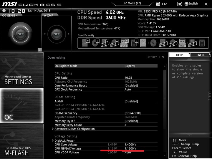 Не могу утвреждать точно за 2200G, но для 2400 1.0 для SOC маловато, от этого наапряжения питается не только сам SOC, но и видяха, так что пусть сразу начинает с 1.1 потому что если у тебя держит штатные частоты начиная с 1 вольта, это не значит что у всех так