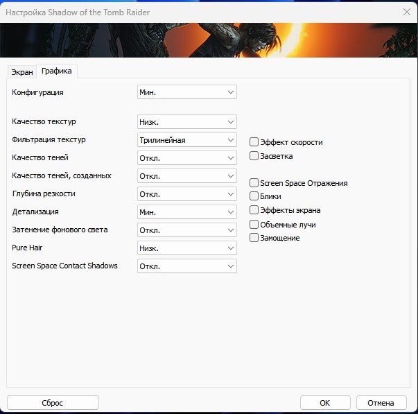 Настройки графики минимальные