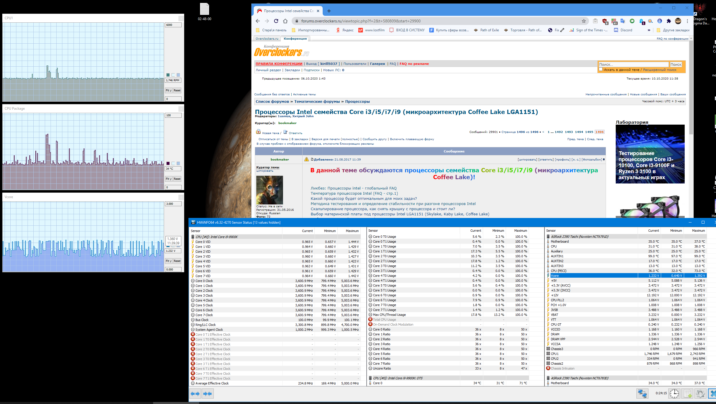 Q: От каких напряжений может деградировать процессор? A: Максимальное напряжения для процессоров Coffee Lake в спецификации Intel составляет 1.52V. Рекомендуемые максимальные значения напряжений: без скальпа до 1,3 В, со скальпом до 1,35-1,4 В. Рекомендация от разработчиков материнских плат: повышать напряжение VCC безопасно до тех пор, пока потребление процессора под нагрузкой превышает изначальный уровень энергопотребления, наблюдаемый при номинальной частоте и штатном VID, не более чем вдвое.