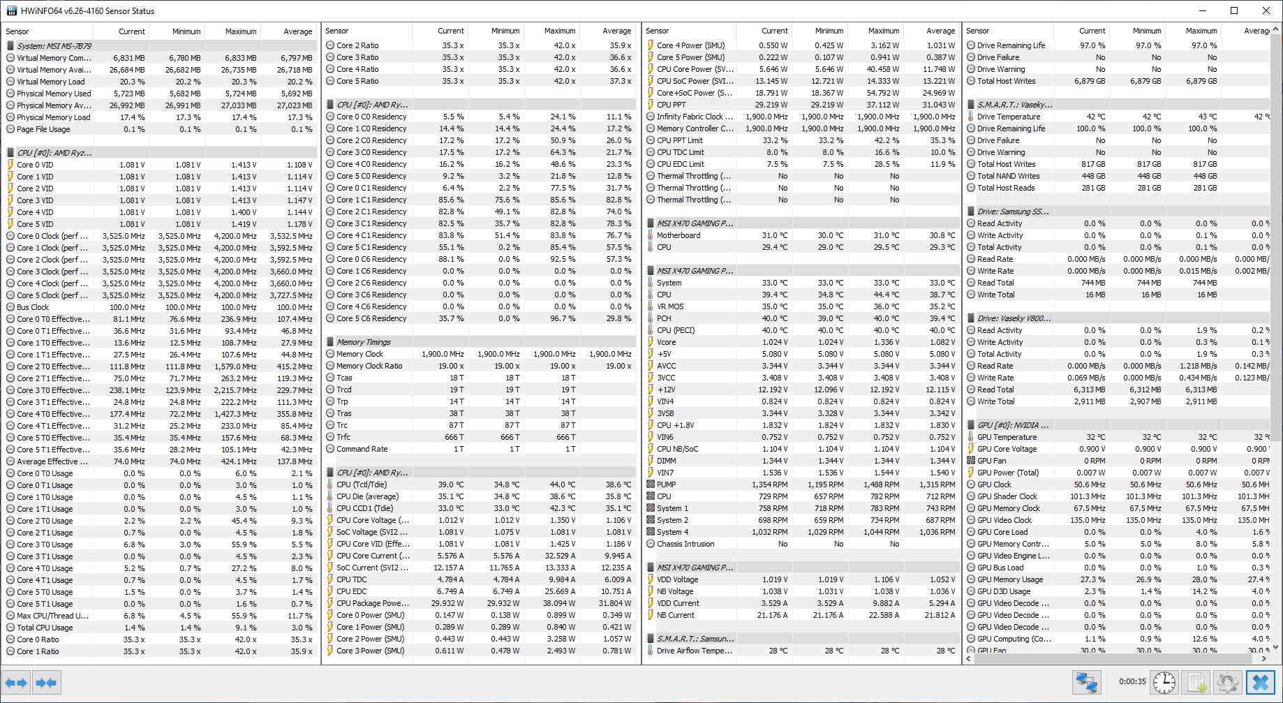 процессор не гнал, только оффсет -0.0625 сделал, а памят разогнал до 3800 напряжение выставил только на питание памяти 1.35, нет тут чего-либо завышенного ?