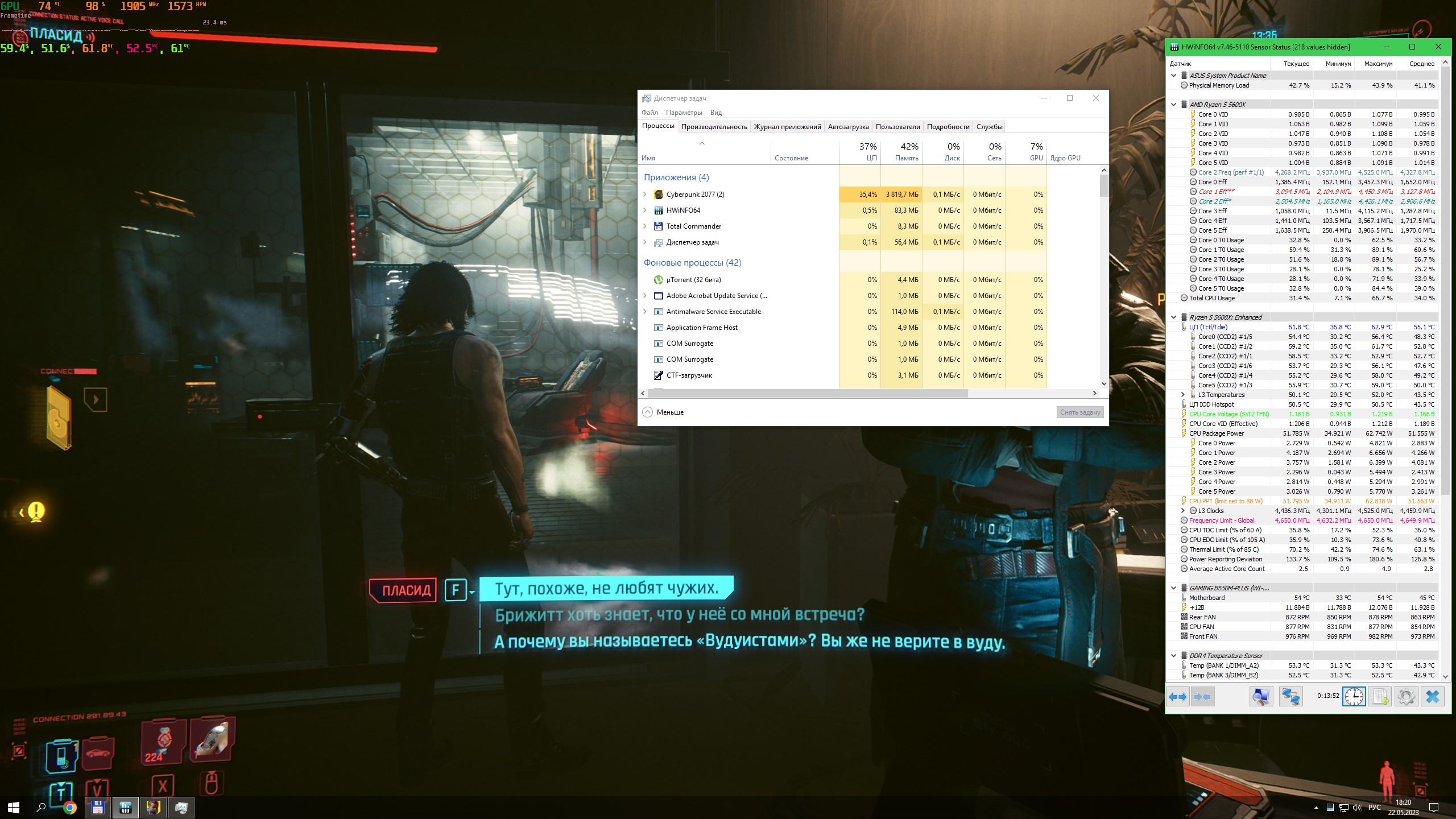 Хм. Вот тут прикол в том, что я проходил игру несколько раз сначала на 3300х, потом на 5600х, но версия игры была какая-то там не помню, но точно не 1.61, и никаких проблем с падением производительности и одновременным повышением загрузки проца по ходу игры не было. А сейчас я гоняю версию 1.61 торрент эдишн от other s, и на ней заметил этот эффект. Это мелочь для меня, но все равно удивился я сильно, так как сам хвалился здесь на форуме низкой загрузкой проца в киберпанке, а вдруг смотрю, все потоки загружены около 90%, и проц в целом 90+ процентов, маленько струхнул (карма что ли, за похвальбу на форуме?). Благо после выхода из игры и запуска с ближайшего сохранения все норм.