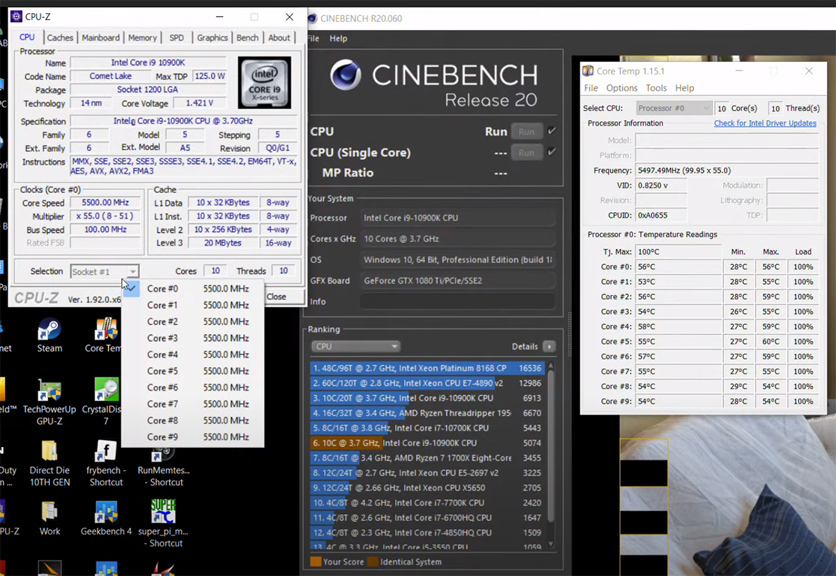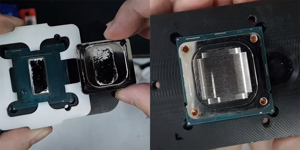 Я просто водоблок сразу на кристал ставлю. Даже без рамки. Хотя конечно, с 10900к может быть проблема. Кристал ниже. И может у него действительно чиллер, а он просто дразнит народ)? Больно температуры на ядрах низкие для такой частоты.