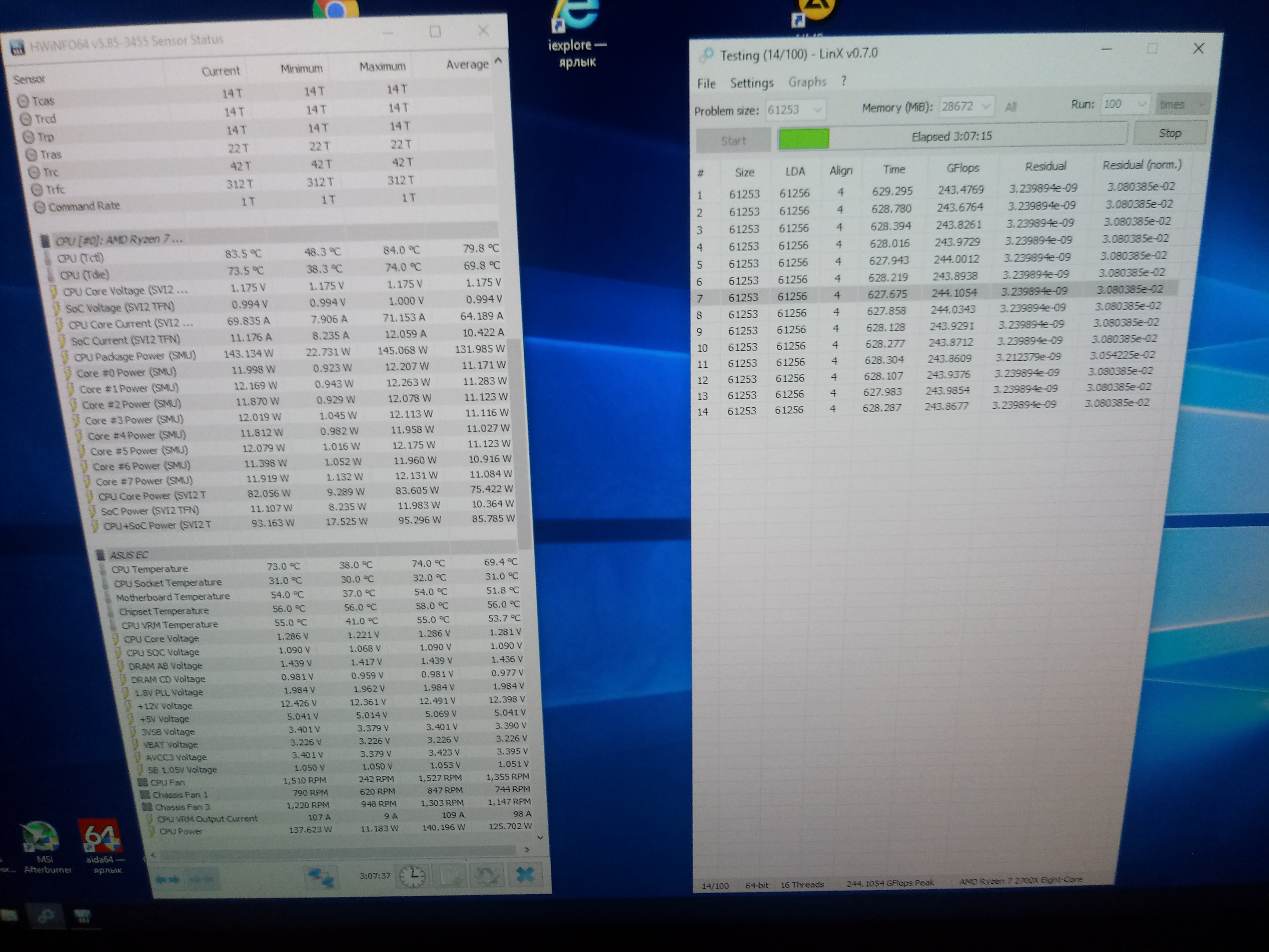 Для себя сделал вывод, пол часа LinX с задачей 8гб и достаточно, далее своими играми и приложениями, если стабильно, то и нечего его мучать