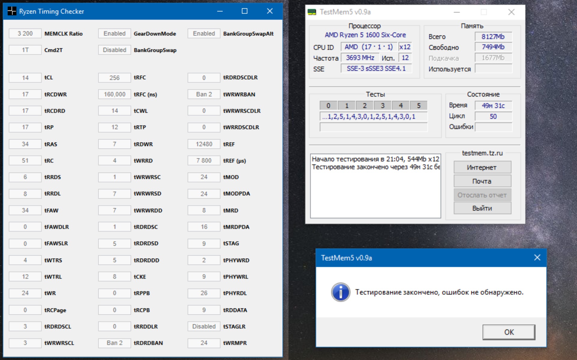 выставляю обычные настройки по калькулятору, могу описать все подробности, но оговорю лишь параметр procODT. У меня рабочее значение 43.6, но если его выставить и вырубить мемориклир - это НЕ сработает. Я ставлю сначала 53.3, тестирую...валят ошибки, потом убираю РТТ в авто и ставлю 48, тестирую дальше, ошибок меньше...ставлю 43.6 ошибок нет и отрубаю мемори клир. Всё, ошибок нет.