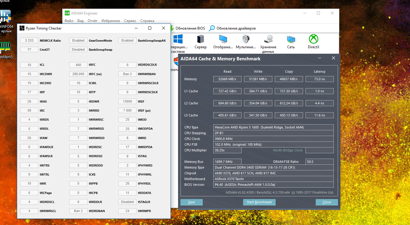 в общем рад я переходу на таичи память взяла 3400 без ошибок делал 30 прогонов TestMem5 больше не вижу смысла. пока неделю держит все норм.единственное память стала показывать большую latency 73. на первых биосах(асрок фаталите гаминг х было 69-72 на 3200 с 16 таймингами) в чем причина понять не могу. в играх тестил пока только в Wot на 3200 бывали просадки фпс с 119до 100 каждую секунду и редкие до 70-80. на 3400 держит 118 119 редкие просадки до 100. так же спасибо 1usmus за новый калькулятор все огонь.но можно еще больше ужимать основные и вторичные таминги хьюниксов.