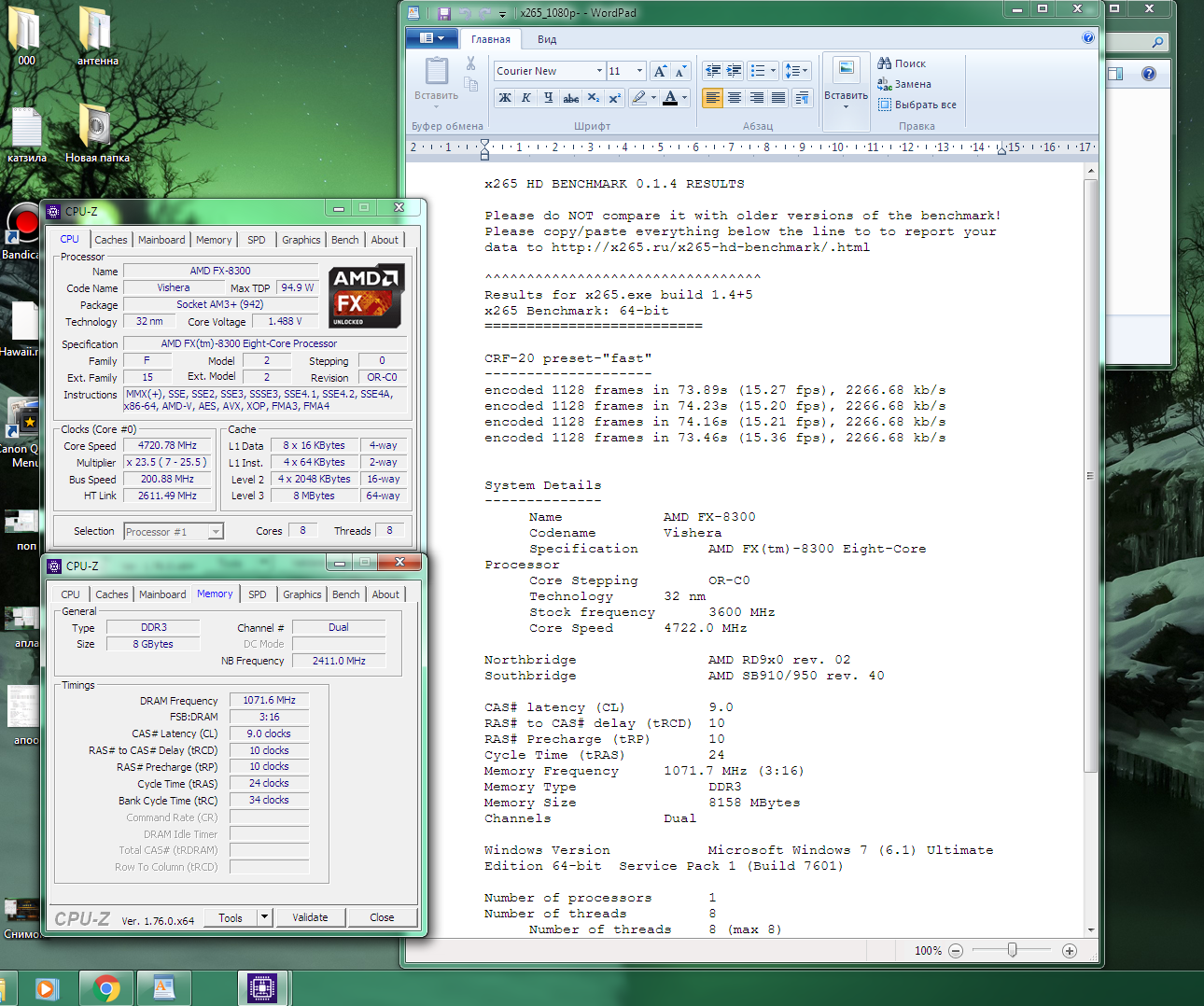 15.26 FPS ----------- а второй прогон encoded 1128 frames in 73.89s (15.26 fps), 2266.68 kb/s encoded 1128 frames in 73.91s (15.26 fps), 2266.68 kb/s encoded 1128 frames in 73.85s (15.27 fps), 2266.68 kb/s encoded 1128 frames in 73.86s (15.27 fps), 2266.68 kb/s