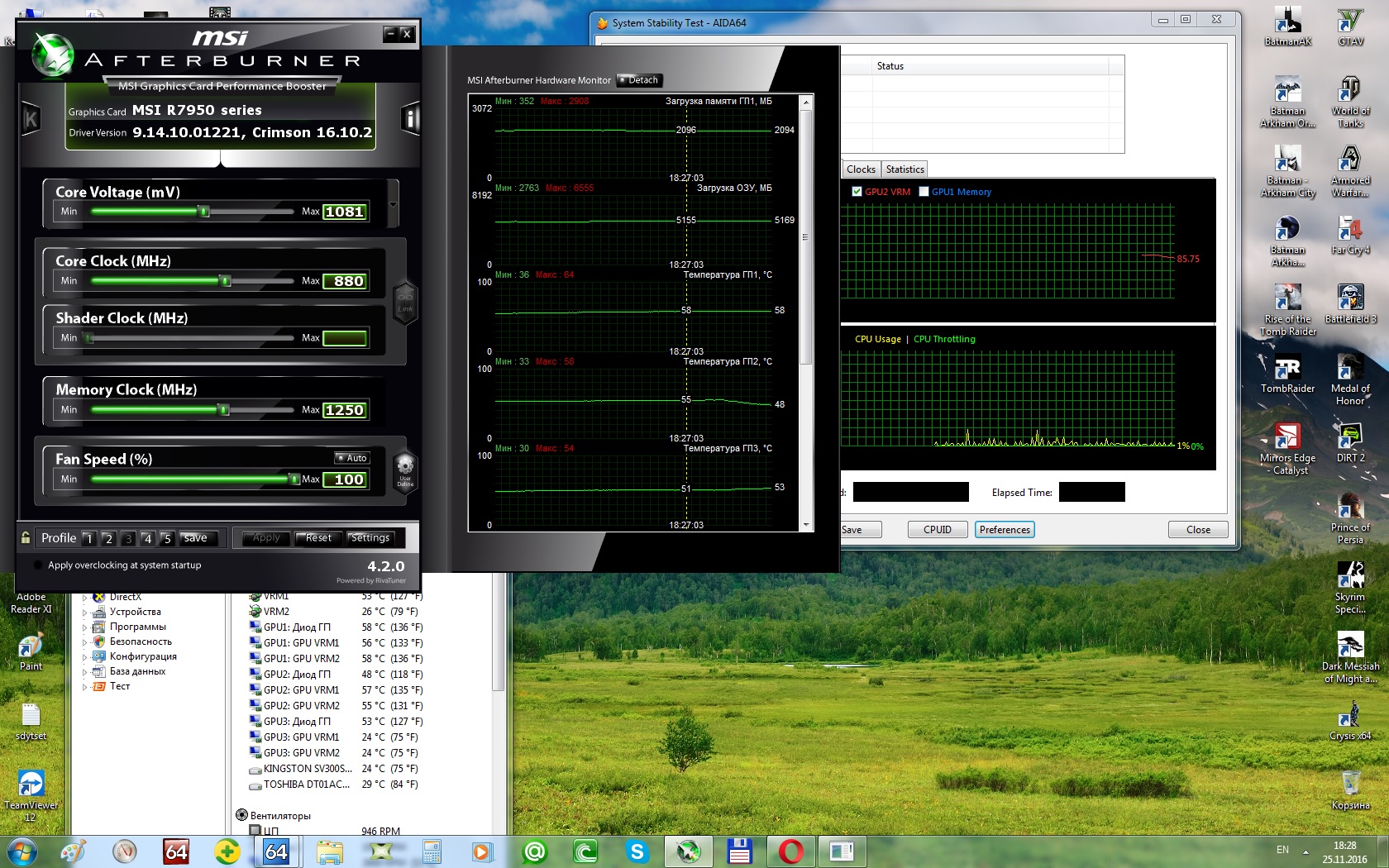 beek я привык критично относиться к всему написанному и не считать истиной последней инстанции, датчиков врм я так понимаю там не было. у меня был референс 7970, там адово грелся врм, а чип был 60, и потребление карты сильно возрастало по мере роста темпы на врм. к тому же карта б/у и ее мог подогреть бывший владелец и вернуть в магзин