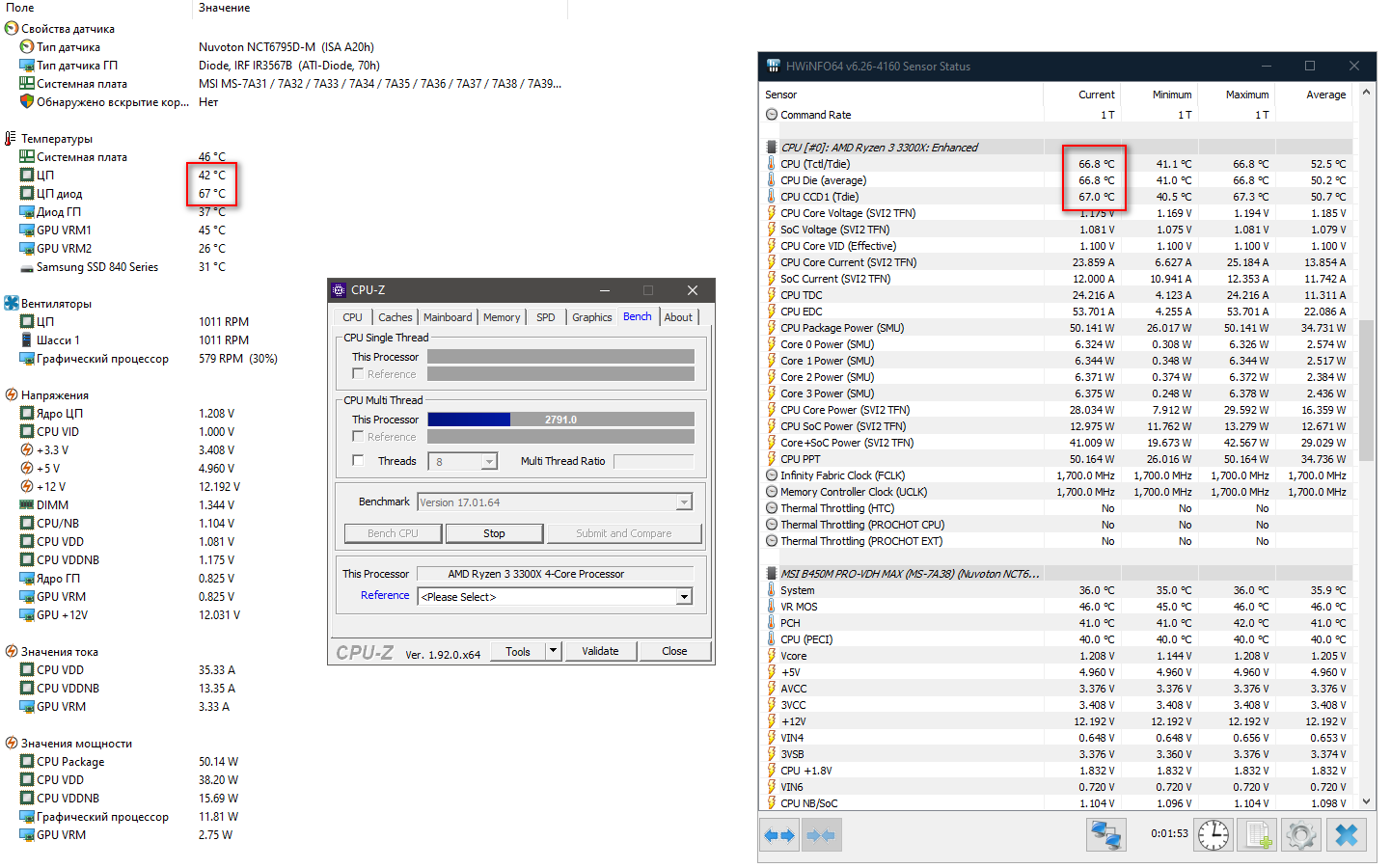 На сокете от СВ20 68 градусов? Да ну, фигня какая то...там скорее всего 40, как и показывает ЦП. Прикрепил скрин, хотите сказать что от бенча CPU-Z за несколько секунд сокет нагрелся до 67 ? )))