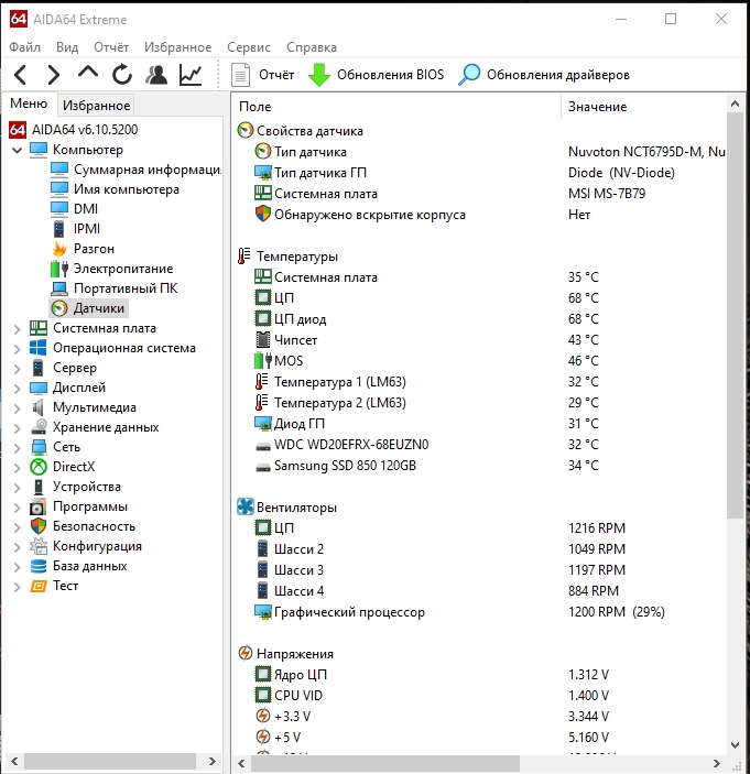 Ну значит забей на Аиду, раз она у тебя подвирает (но скорее всего эта версия еще не знает новые платы). Или смотри только ЦП диод. У меня под нагрузкой так: